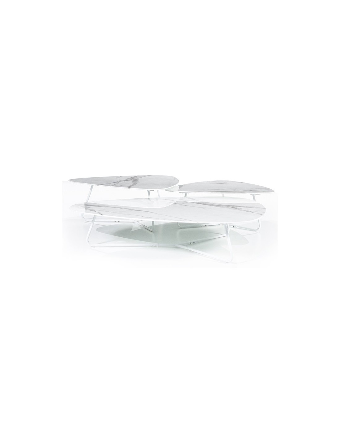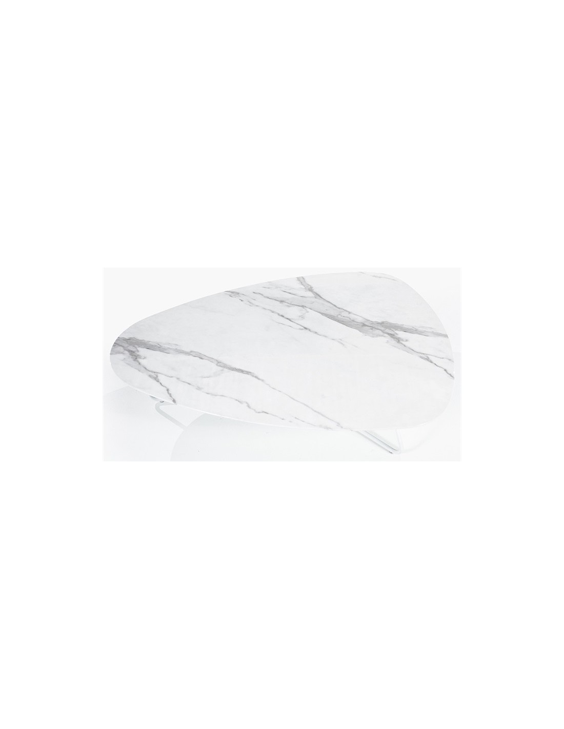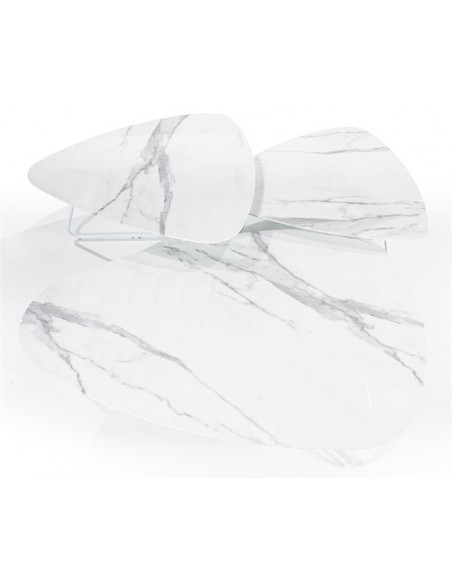 Neno sofabord udført i et moderne design, fremstillet i hvidlakeret metal og med bordplade i glas med hvid marmorstruktur. Sofabordet måler 28 cm i højden og 130 x 95 cm i bredde og dybde.