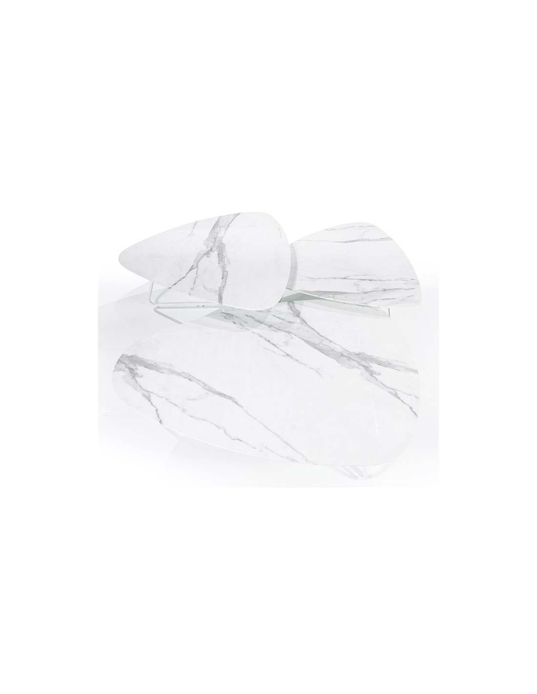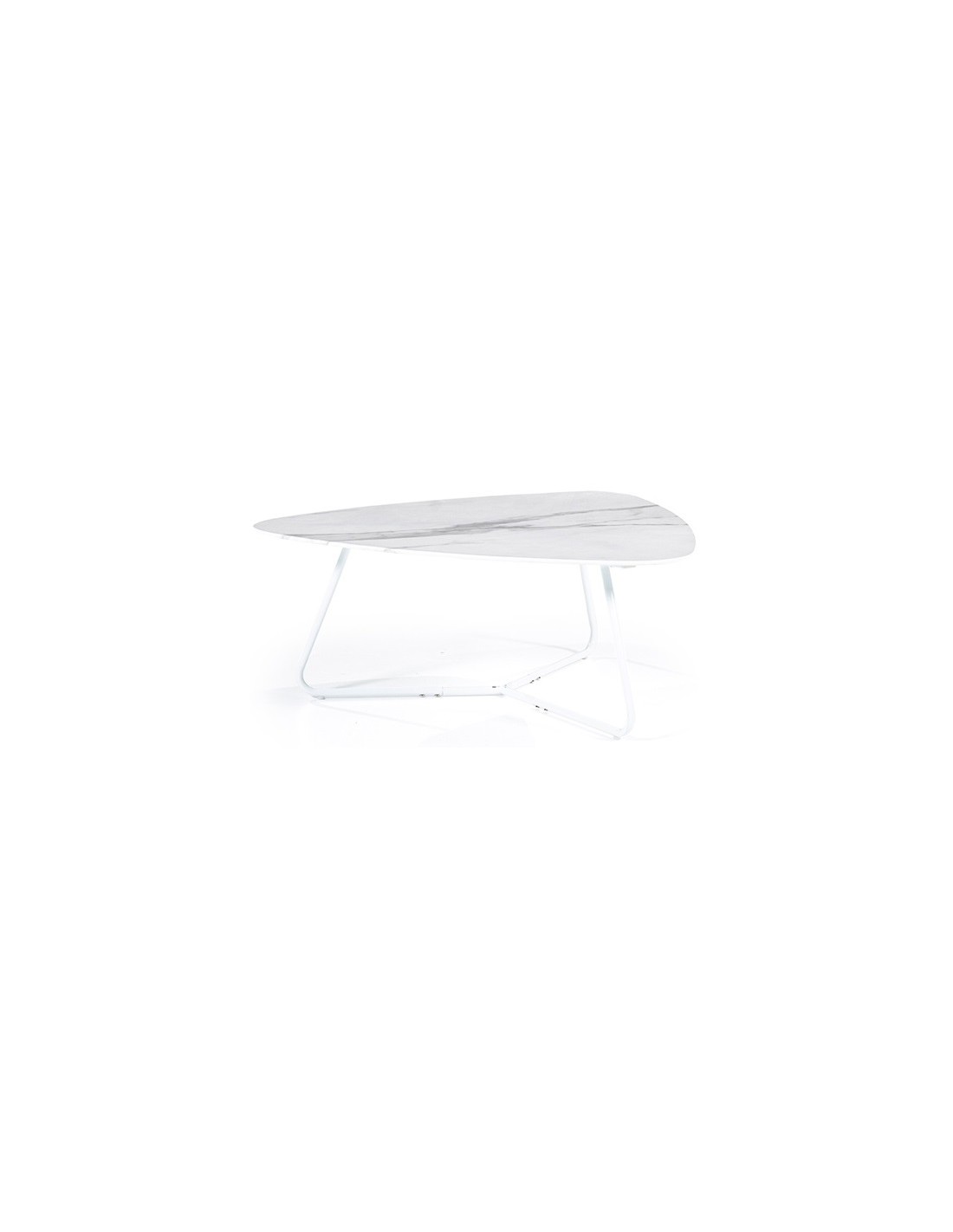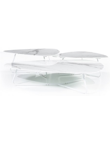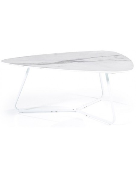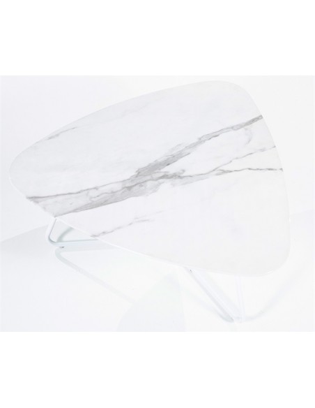 Neno sofabord udført i et moderne design, fremstillet i hvidlakeret metal og med bordplade i glas med hvid marmorstruktur. Sofabordet måler 36 cm i højden og 85 x 95 cm i bredde og dybde.