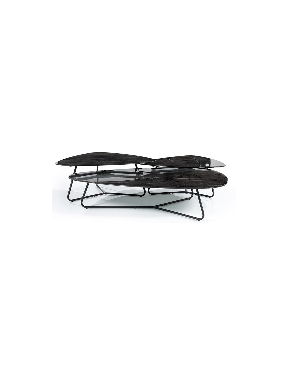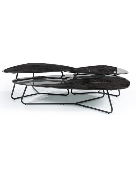 Neno sofabord udført i et moderne design, fremstillet i sortlakeret metal og med bordplade i glas med sort marmorstruktur. Sofabordet måler 36 cm i højden og 85 x 95 cm i bredde og dybde.
