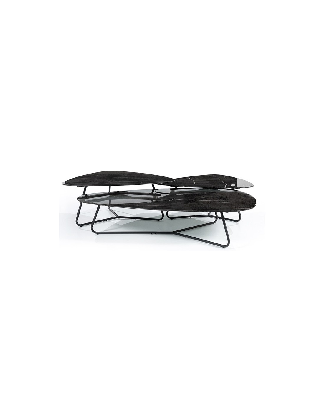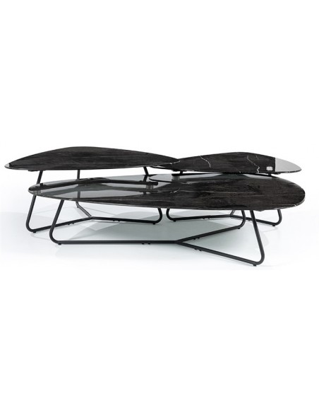 Neno sofabord udført i et moderne design, fremstillet i sortlakeret metal og med bordplade i glas med sort marmorstruktur. Sofabordet måler 32 cm i højden og 75 x 85 cm i bredde og dybde.