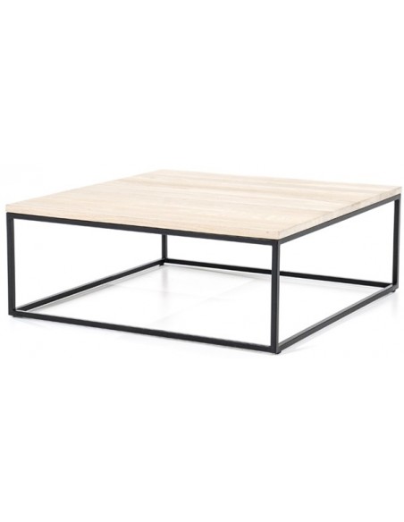 Robin sofabord udført i et moderne design, fremstillet i sortlakeret metal og med bordplade i genanvendt lakeret egetræ. Sofabordet måler 30 cm i højden og 100 x 100 cm i bredde og dybde.