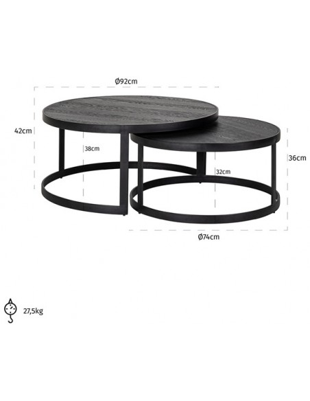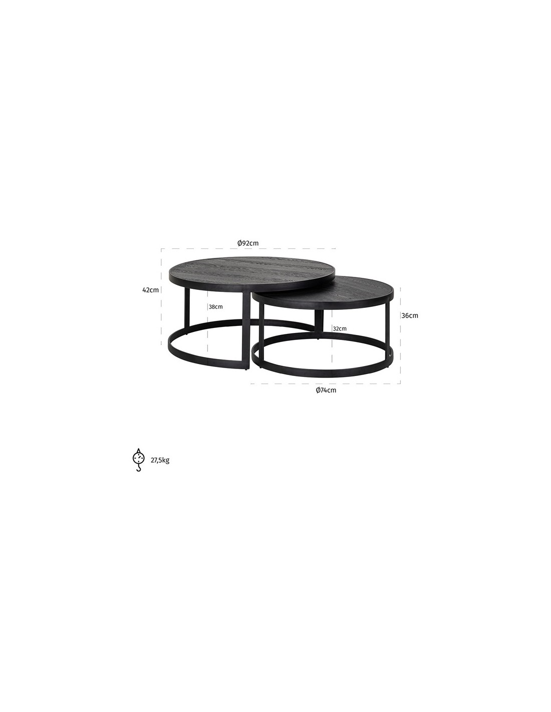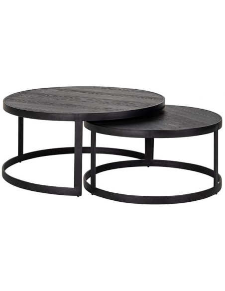 Sæt med 2 sofaborde i et design fra hollandske Richmond Interiors. Sofabordene er fremstillet bejset sort egetræ og sortlakeret stål. Bordene måler 74 og 92 cm i diameter og 36 og 42 cm i højden.