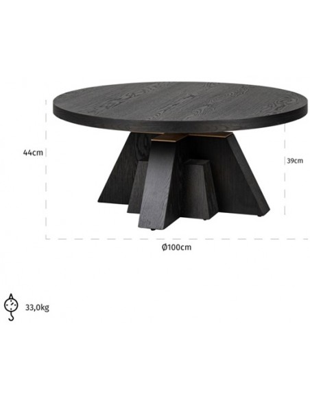 Sofabord i et design fra hollandske Richmond Interiors. Sofabordet er fremstillet bejset sort egetræ og messinglakeret metal. Bordet måler 100 cm i diameter og 44 cm i højden.