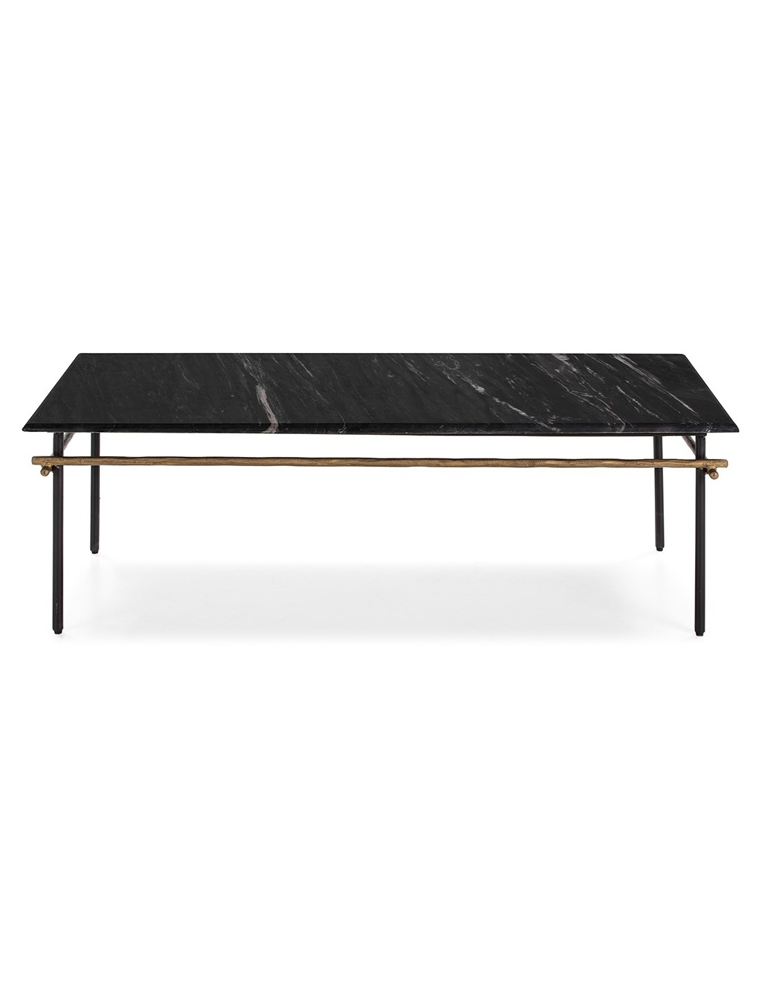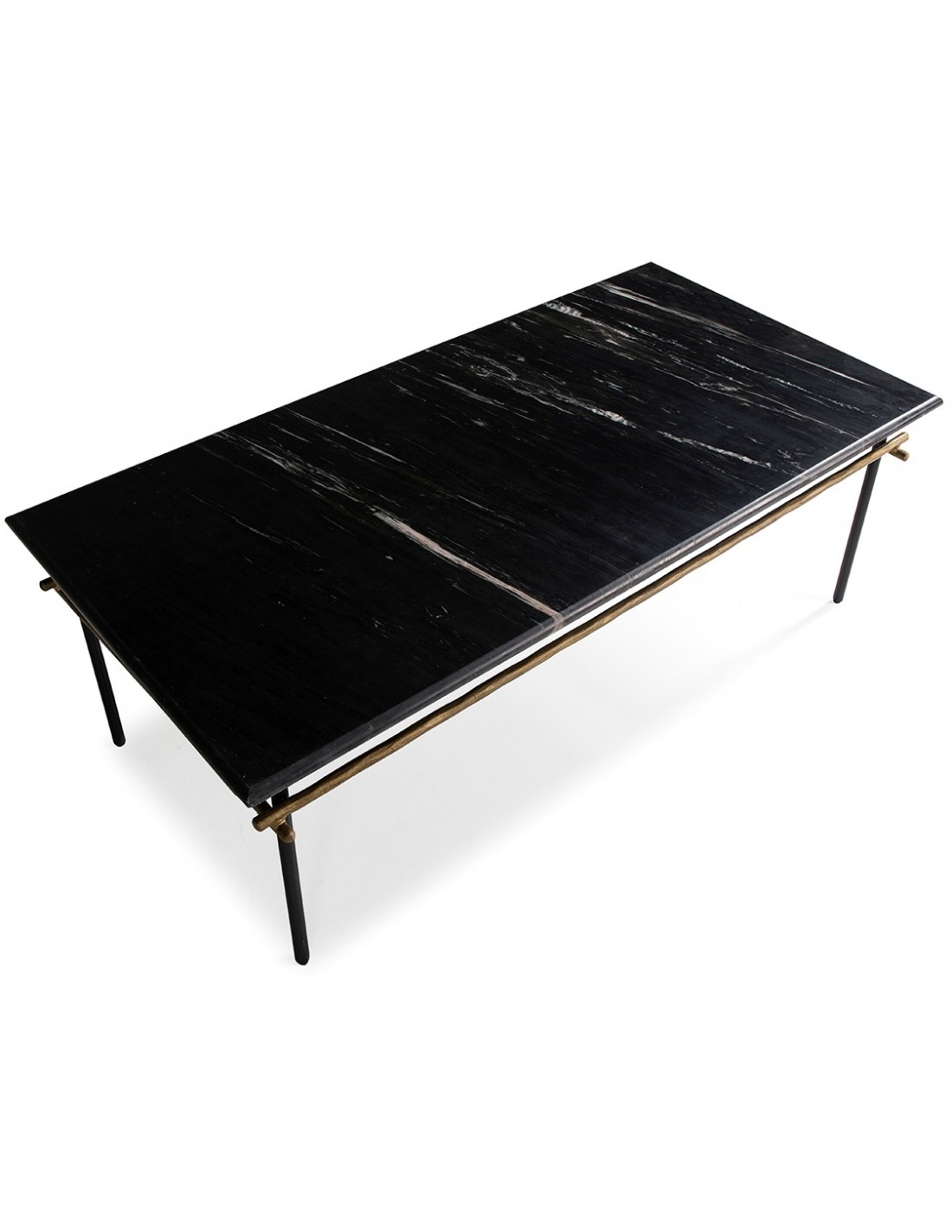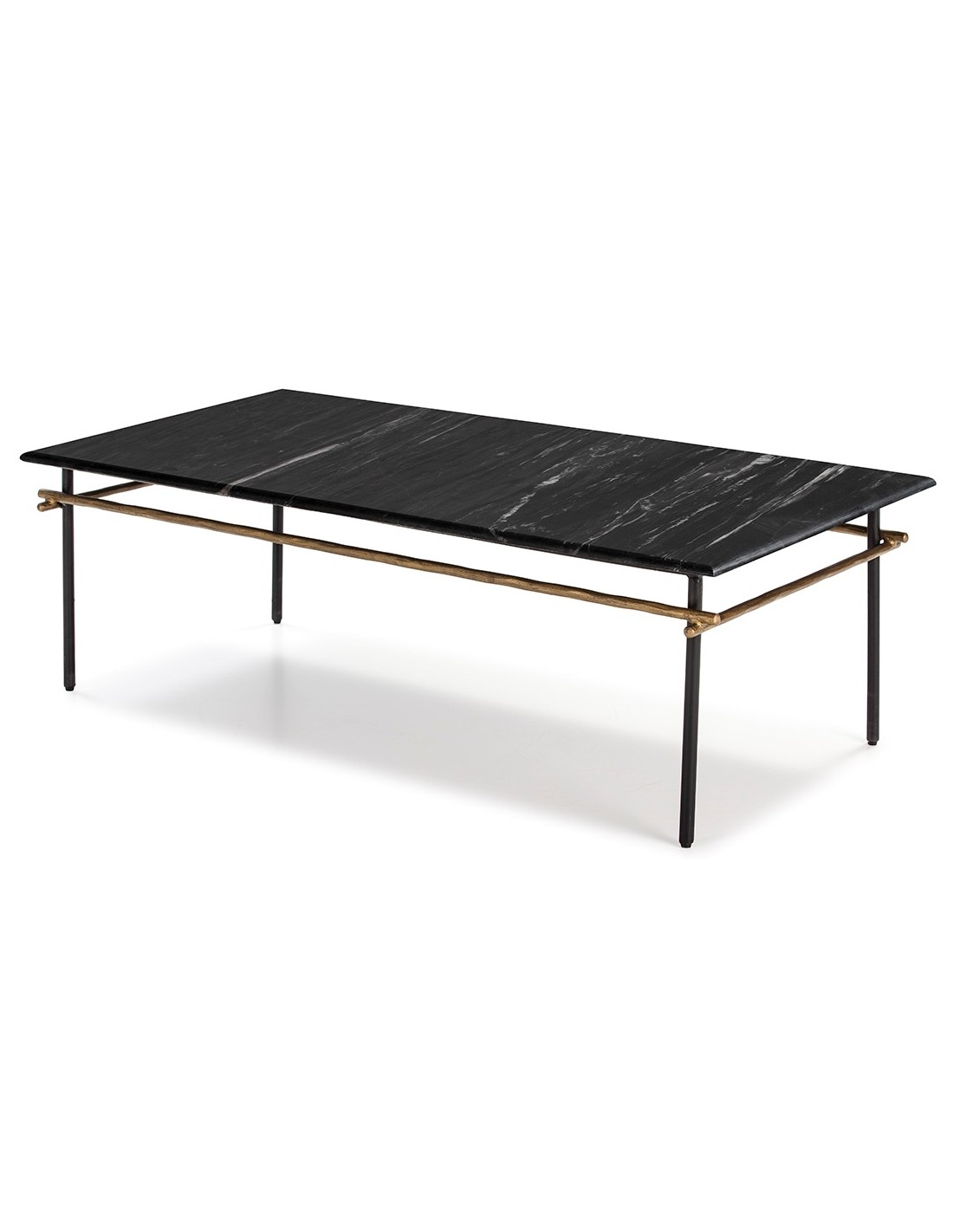 Sofabord i marmor og jern 122 x 61 cm - Antik gylden/Sort marmor