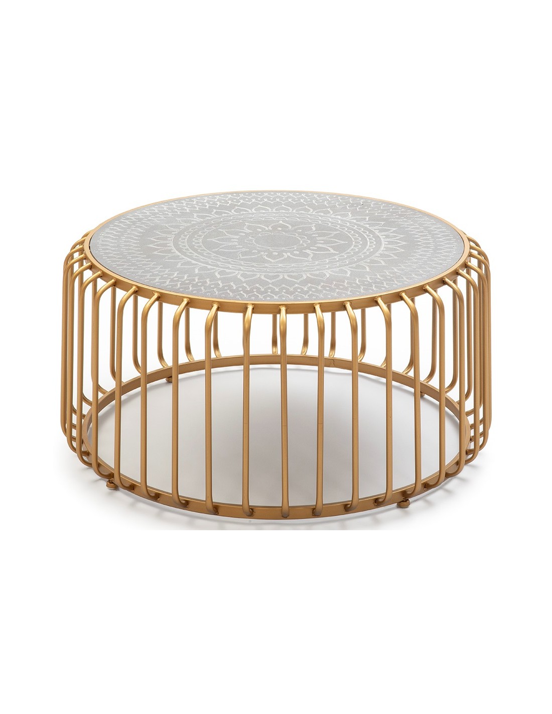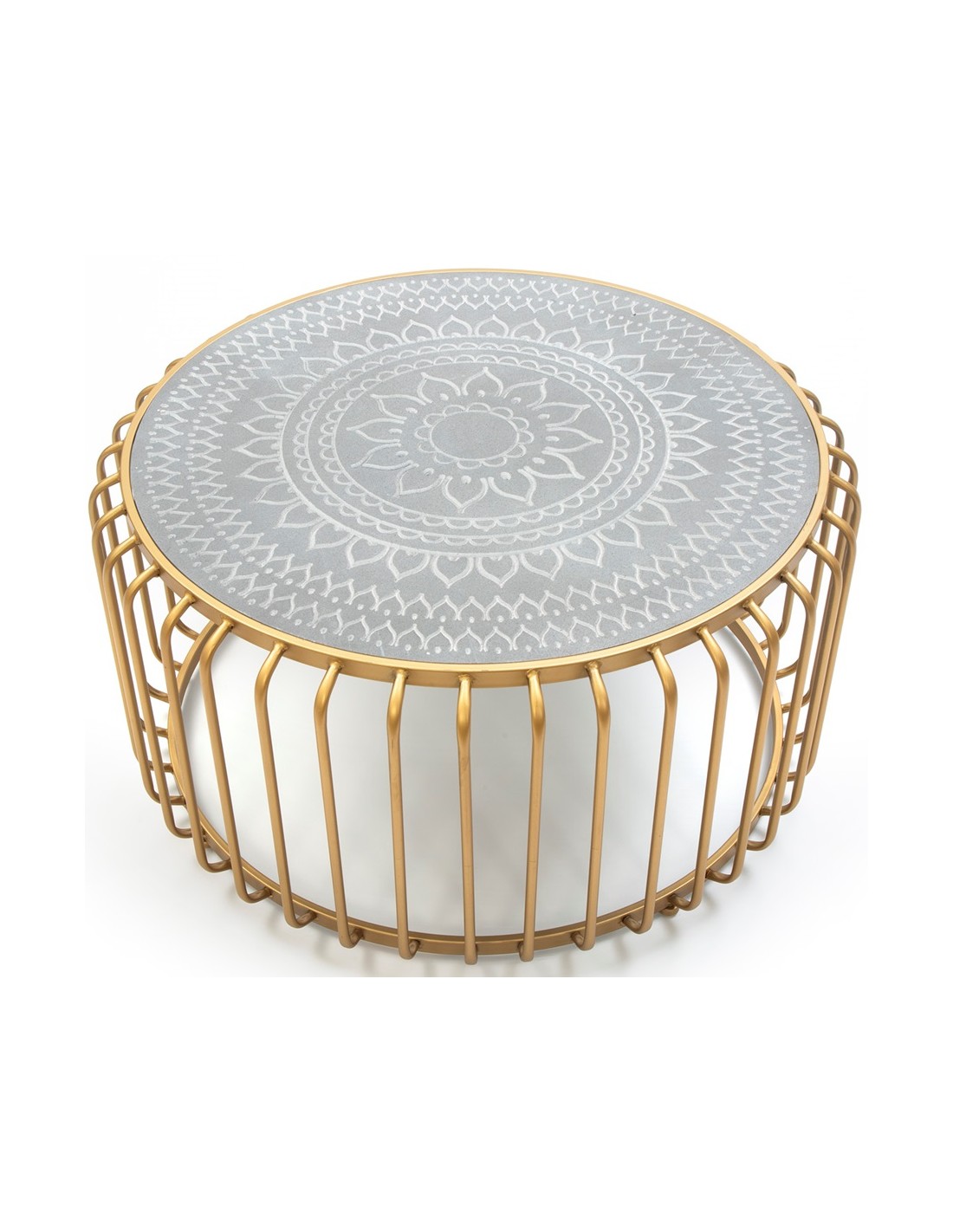 Sofabord i MDF og metal Ø77 cm - Antik gylden/Grå