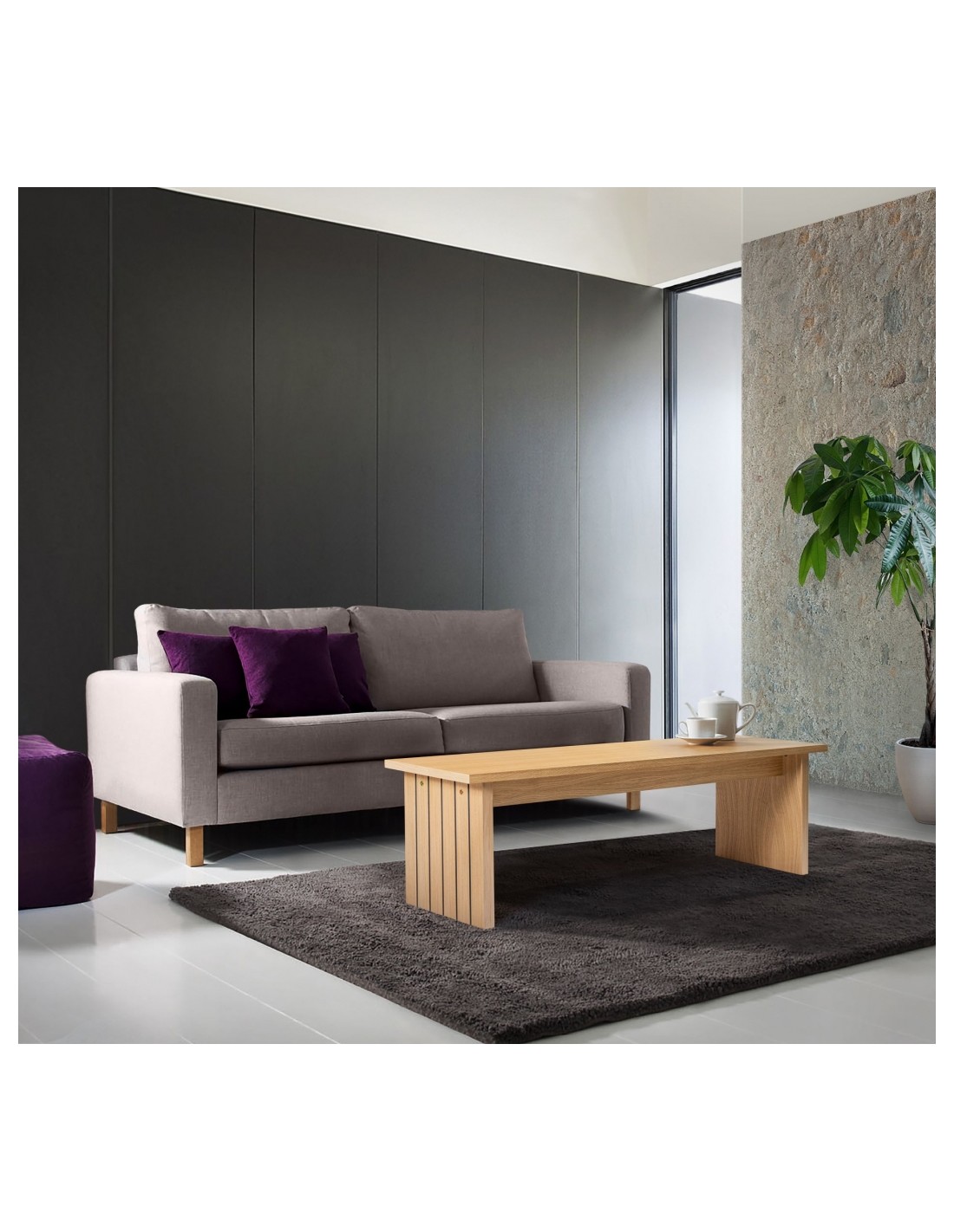 Woodman Stripe Sofabord 120 x 60 cm - Sort/Eg