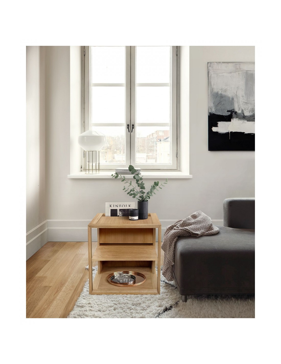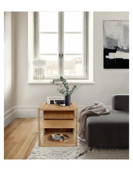 Sofabord fra Woodman, udført i et moderne design af egetræsfinér. Sofabordet måler 50 x 50 cm i bredde og dybde og 50 cm i højden. Sofabordet kan alternativt også anvendes som sengebord.