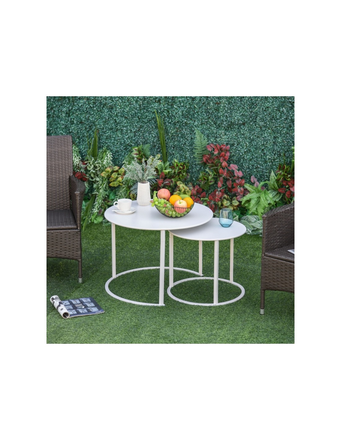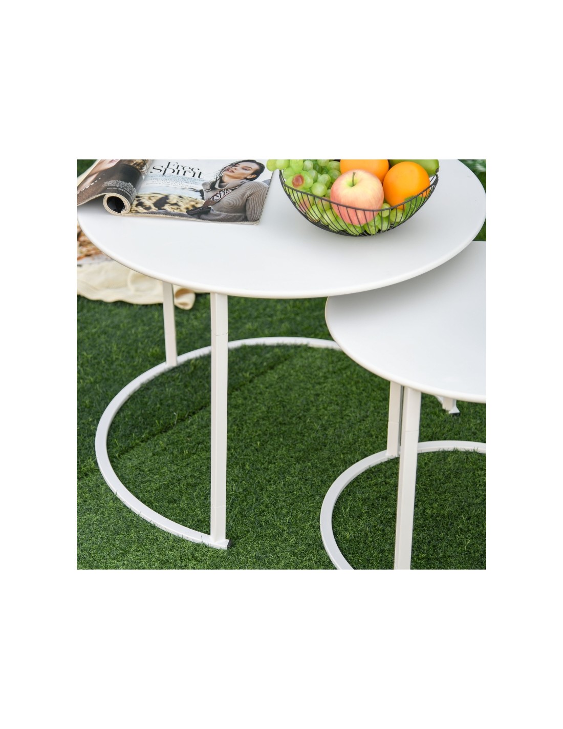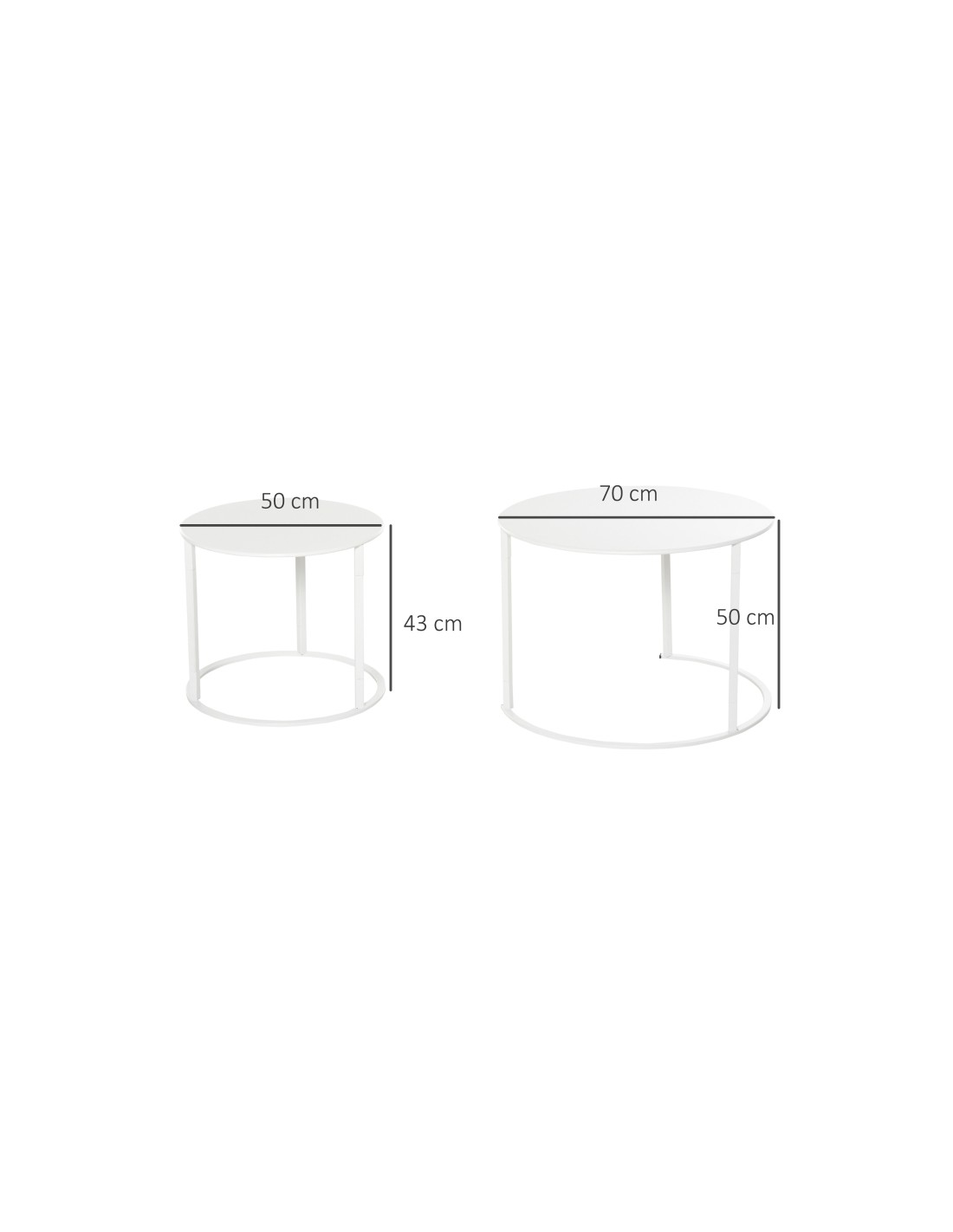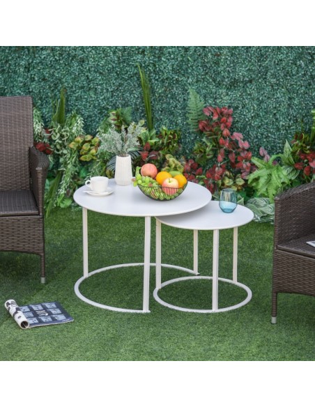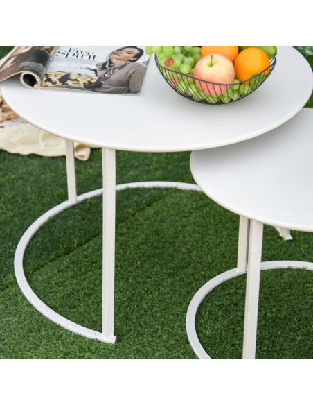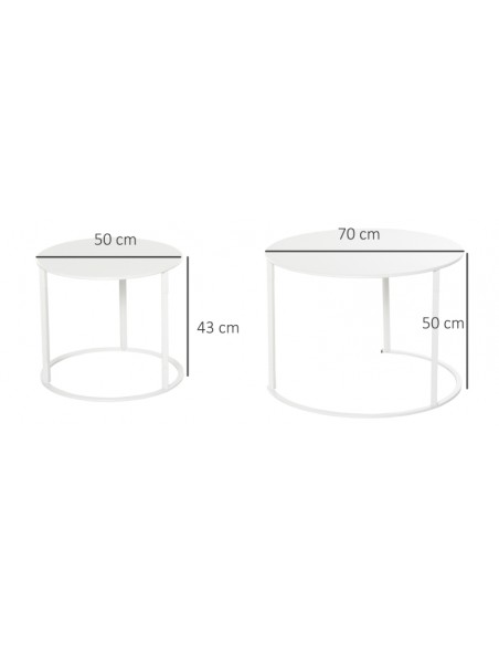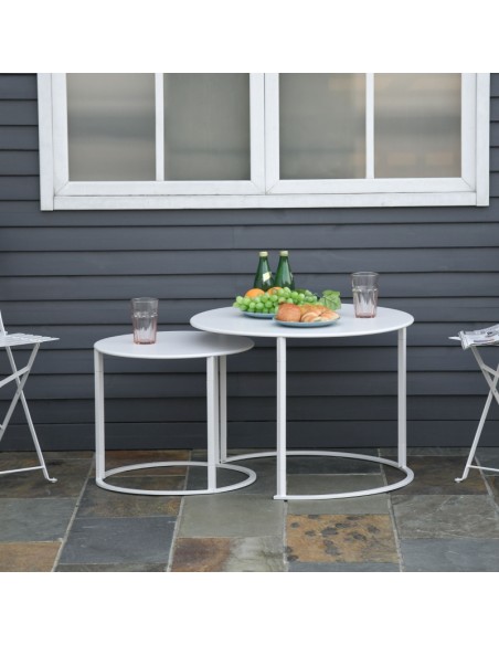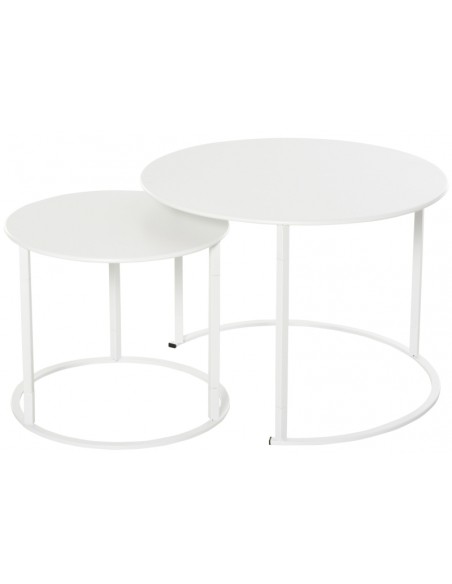Sæt med 2 sofaborde i metal Ø50 + Ø70 cm - Hvid