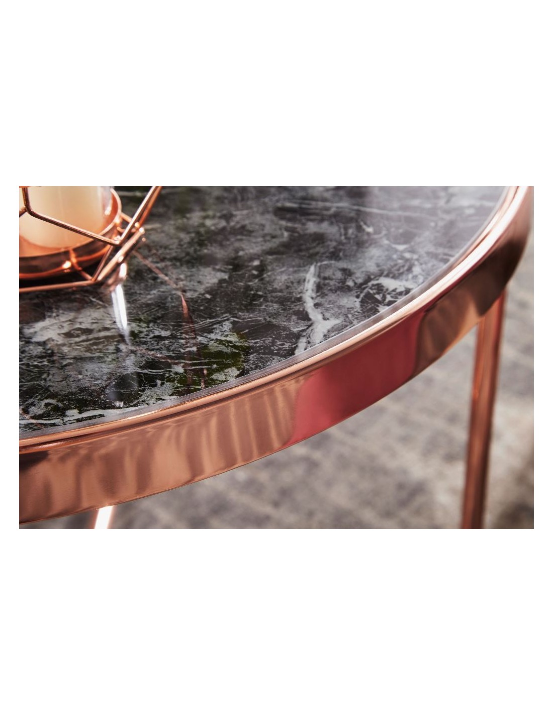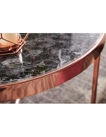 Sofabord i metal og glas H46,5 x Ø60 cm - Kobber/Marmoriseret sort