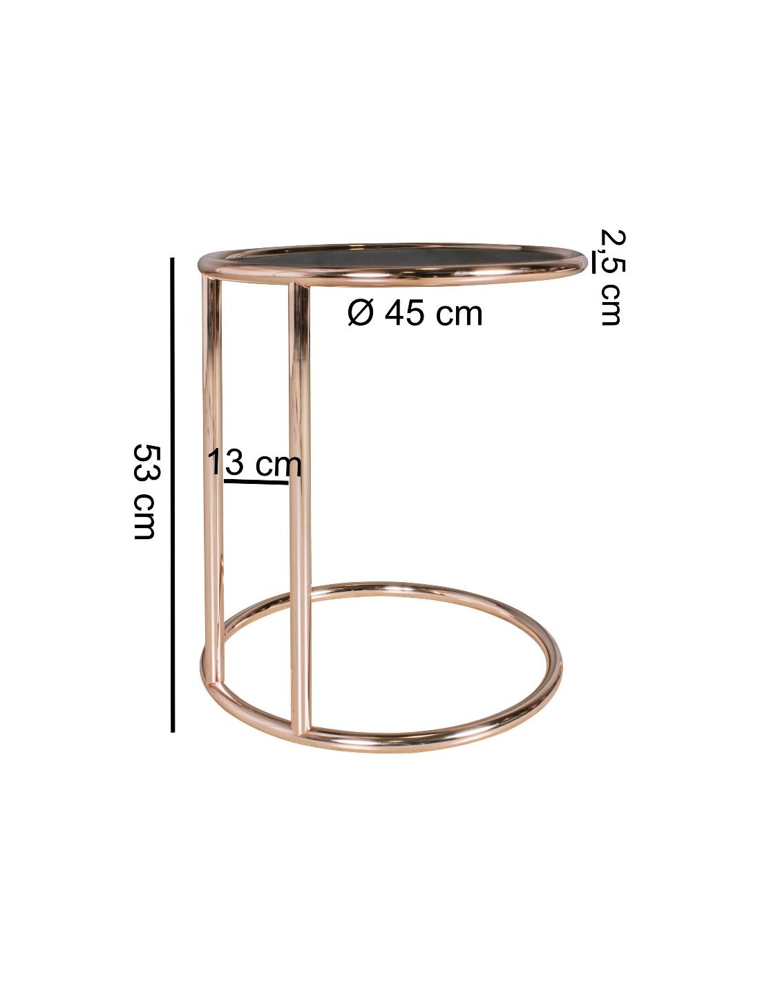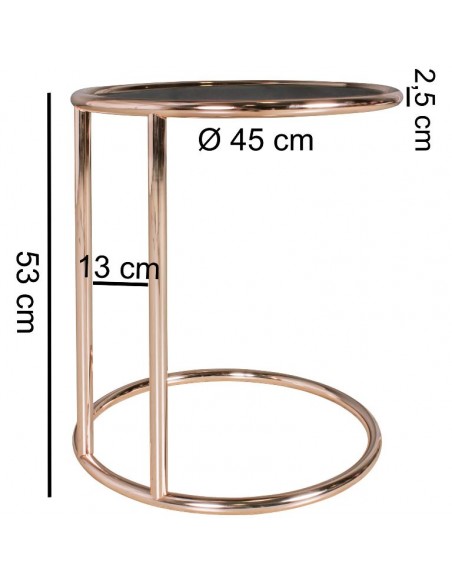 Sofabord i metal og glas H53 x Ø45 cm - Kobber/Spejl sort