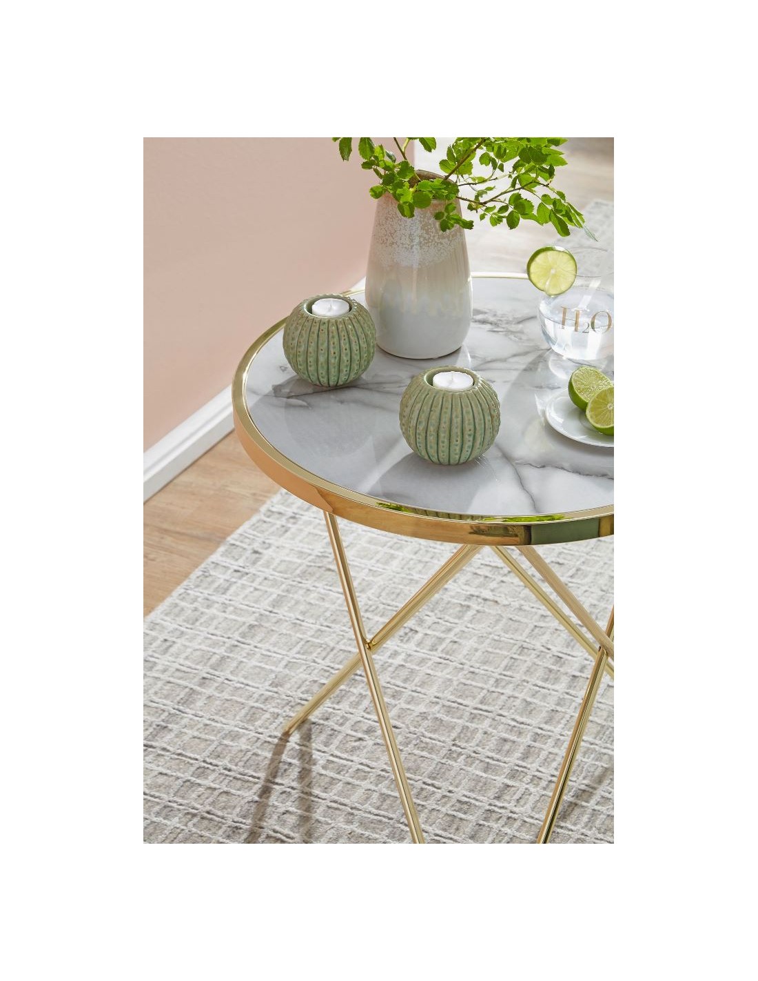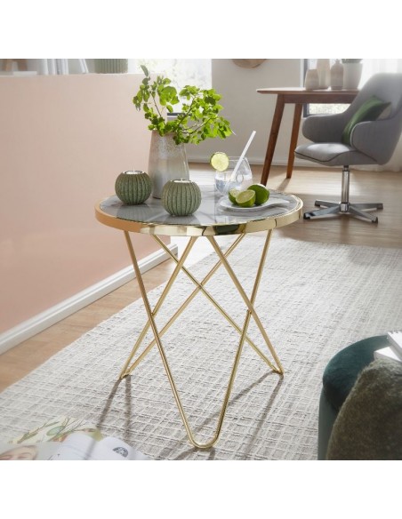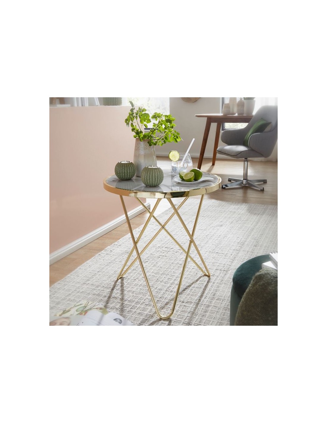 Sofabord i metal og mdf H57 x Ø55 cm - Guld/Marmoriseret hvid