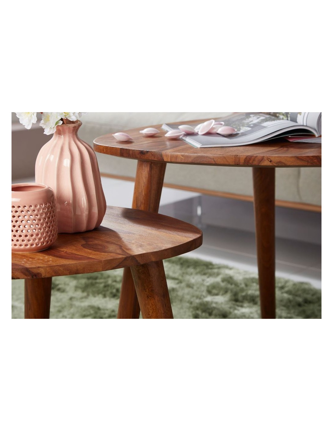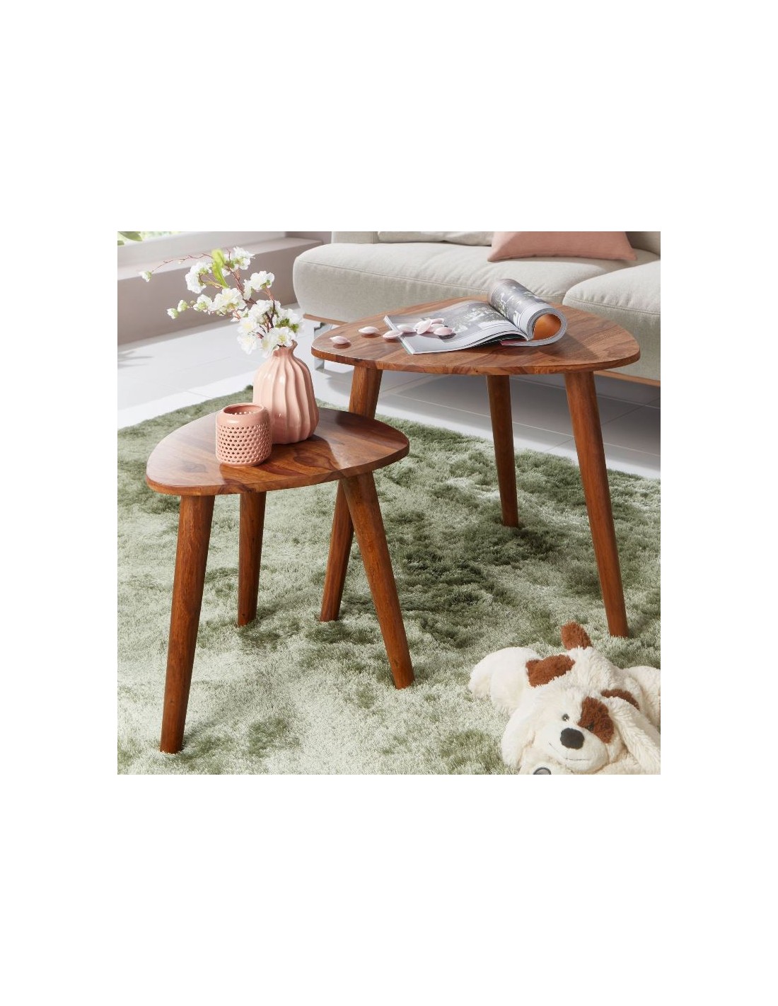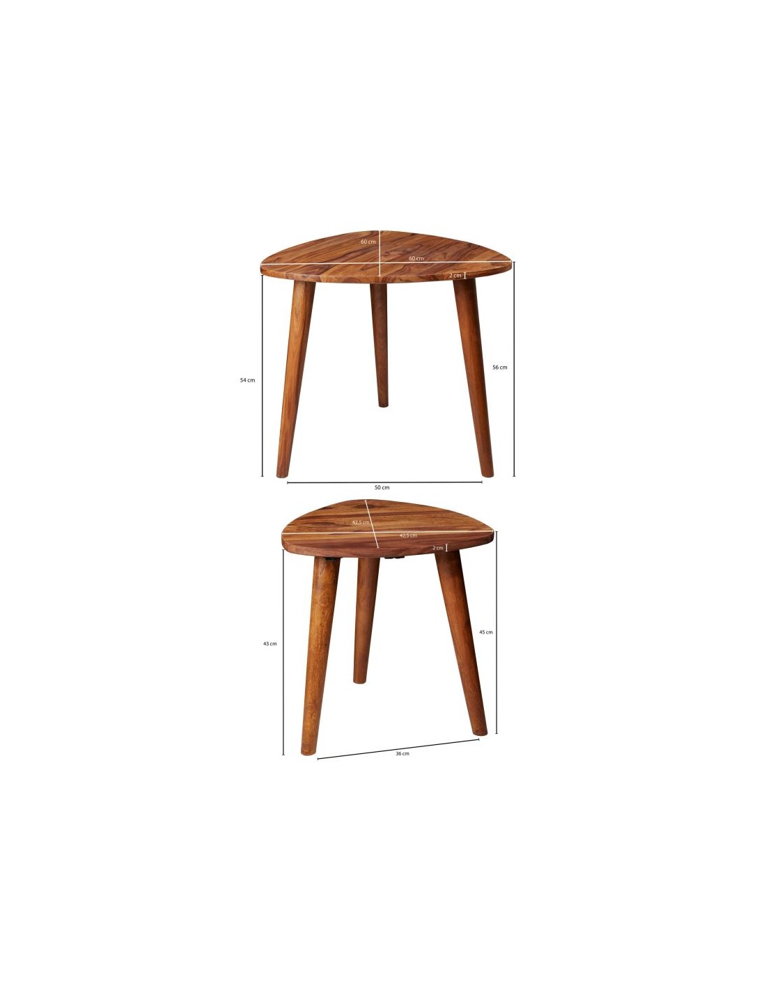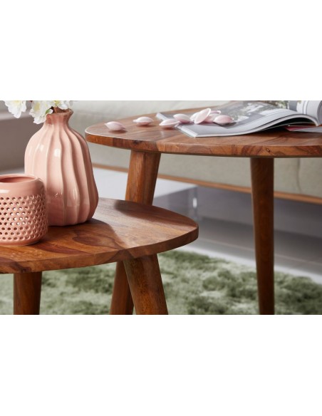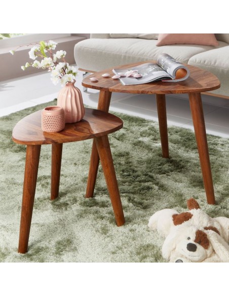 Sæt med 2 sofaborde i sheeshamtræ H45 + 56 cm - Brun