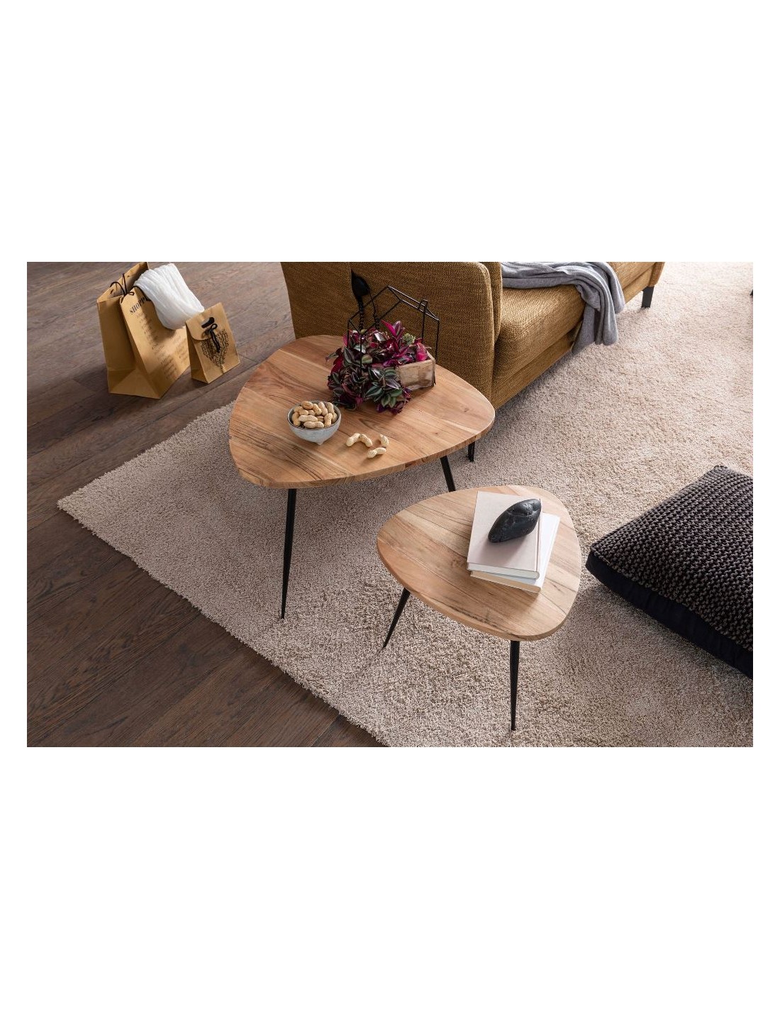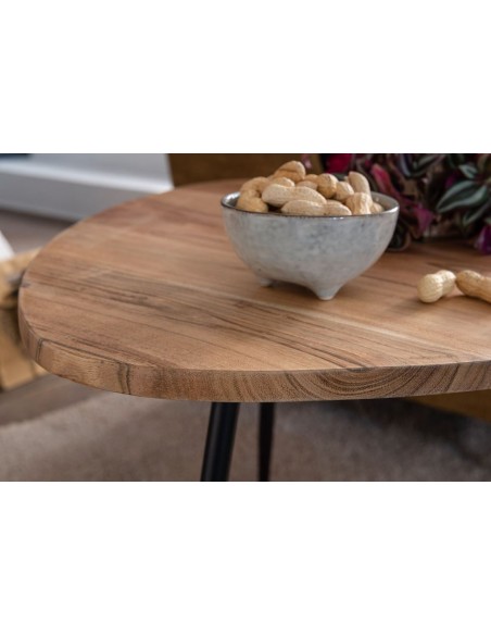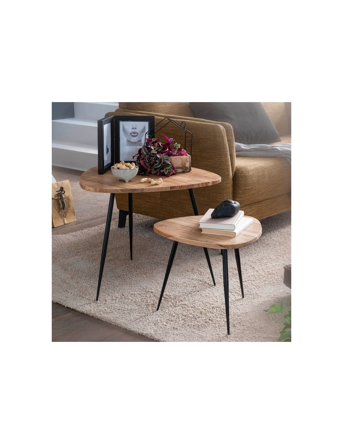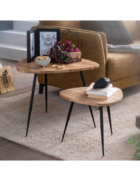 Sæt med 2 sofaborde i metal og akacietræ H37 + 51 cm - Sort/Natur