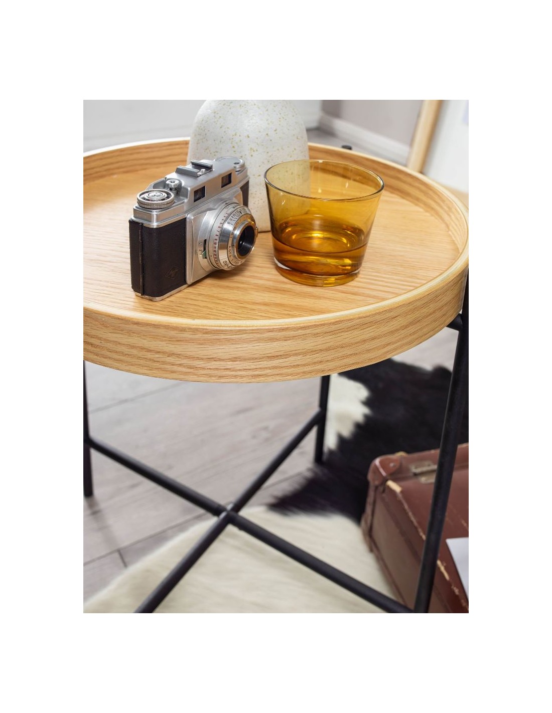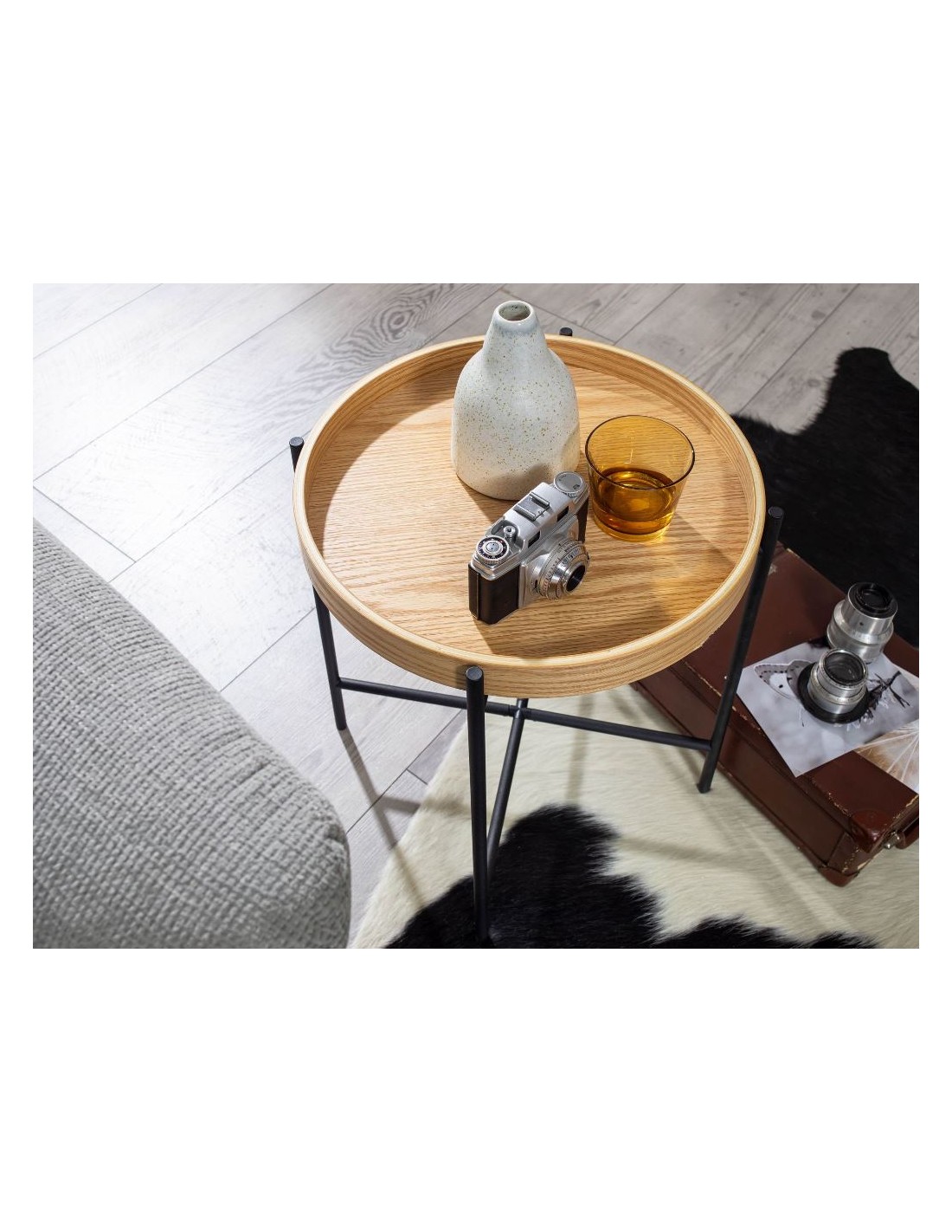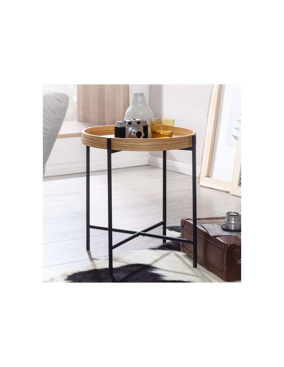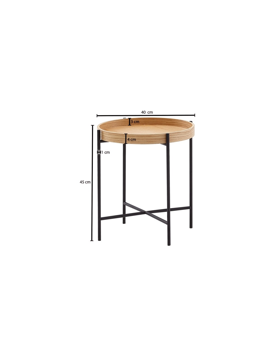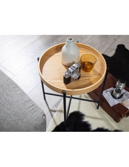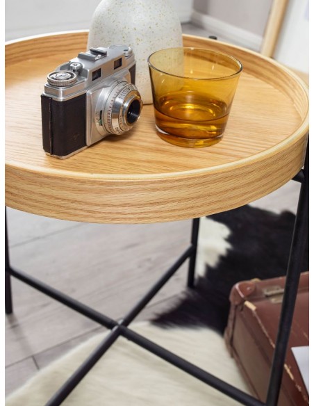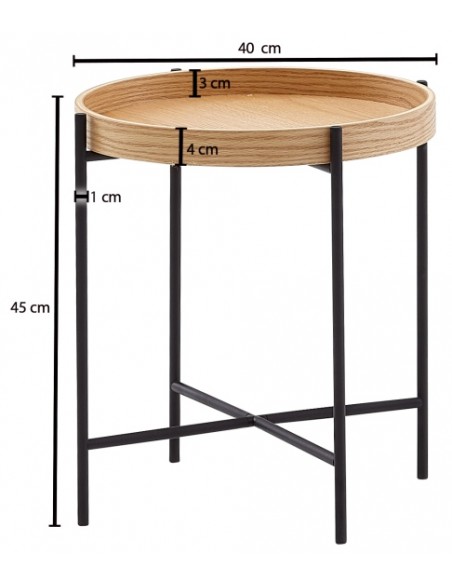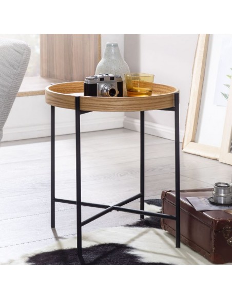 Sofabord i metal og mdf H45 x Ø40 cm - Sort/Natur