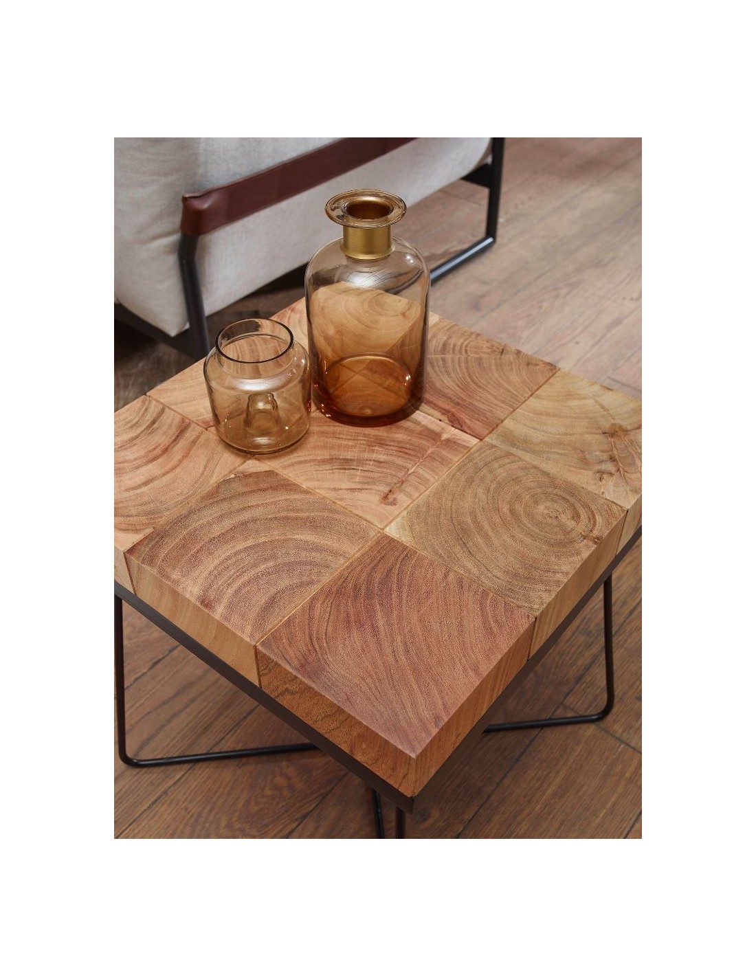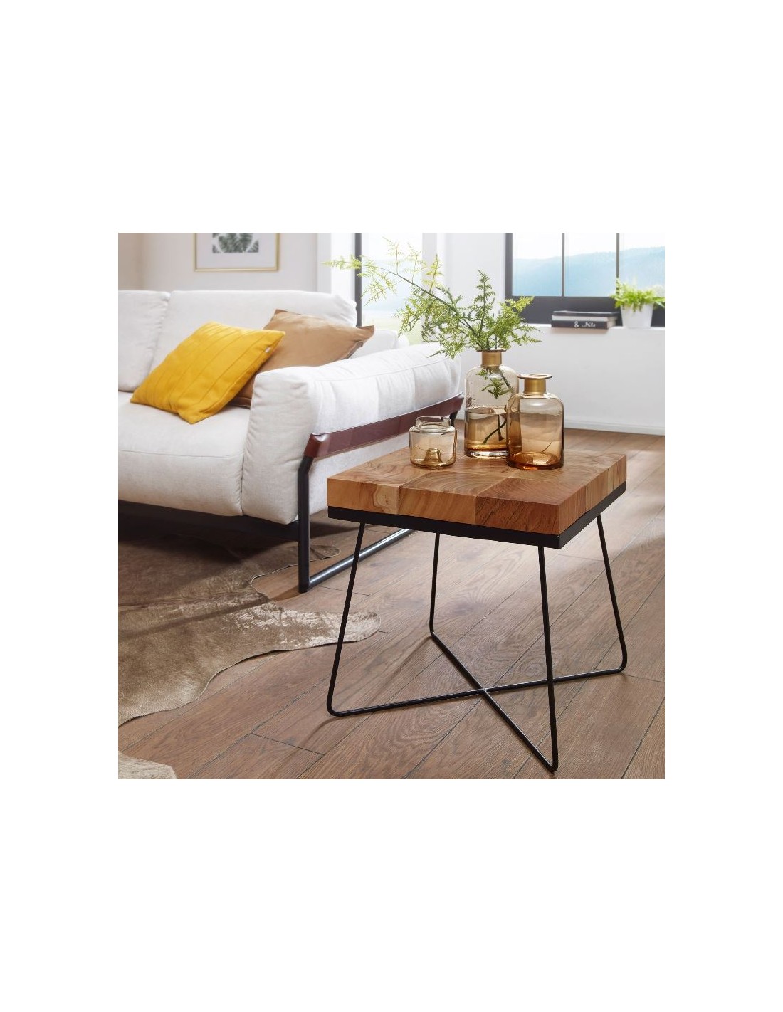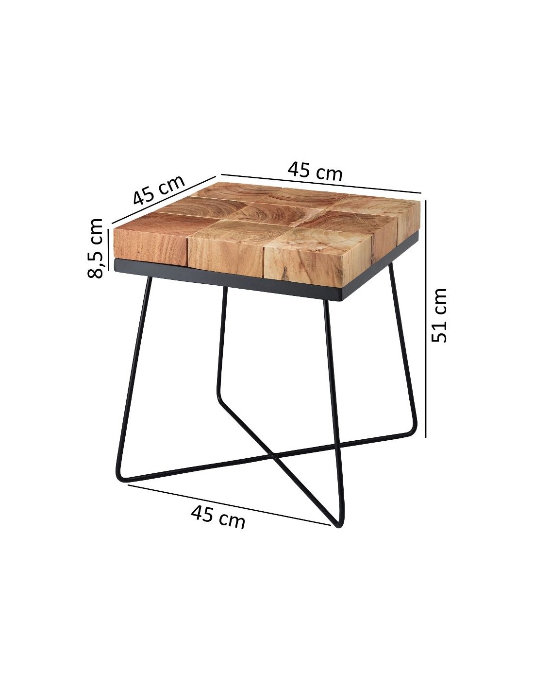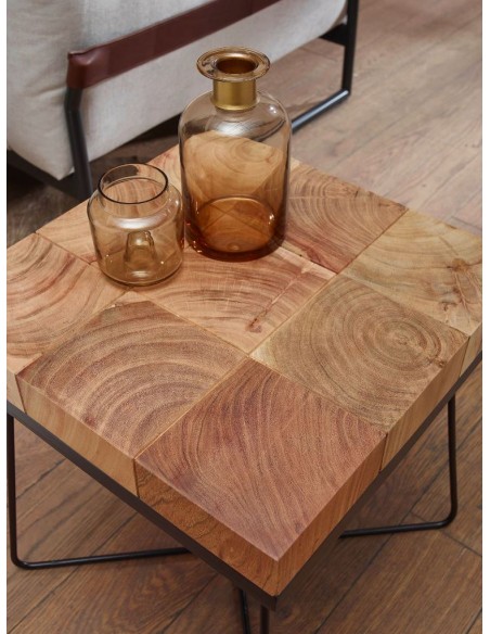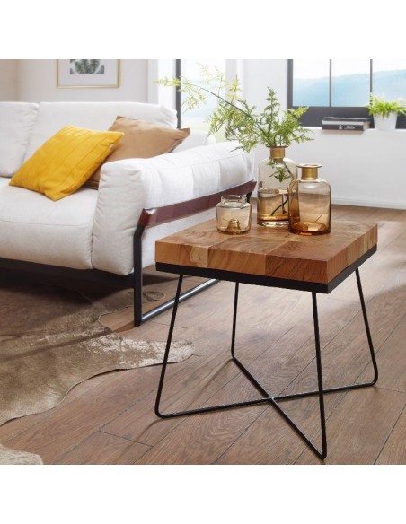 Sofabord i metal og akacietræ 45 x 45 cm - Sort/Akacie