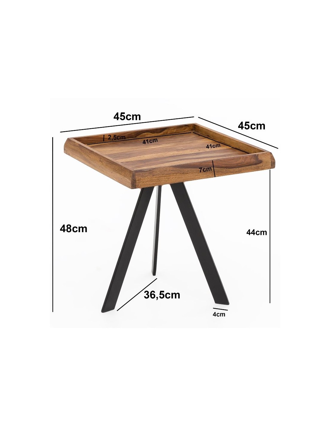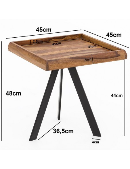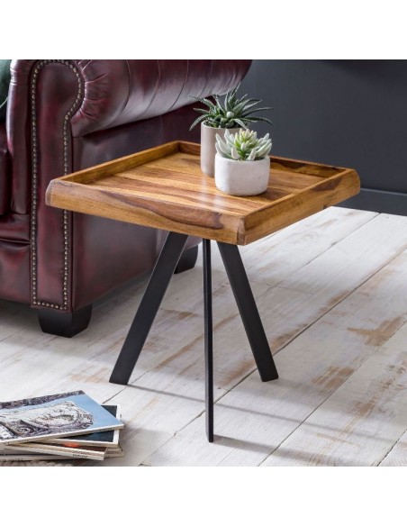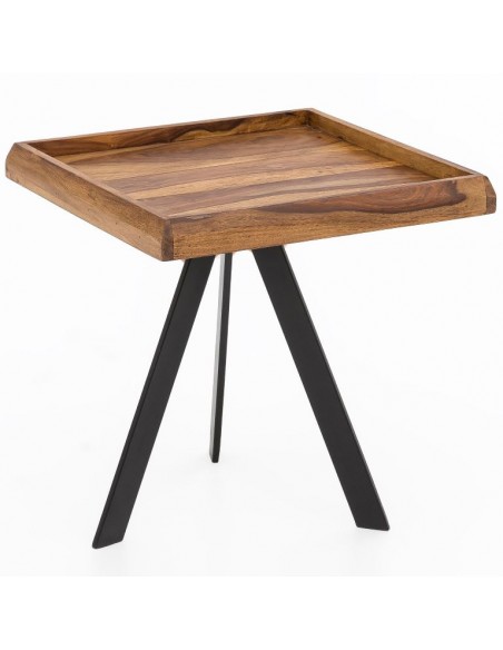 Sofabord i metal og sheeshamtræ 45 x 45 cm - Sort/Brun