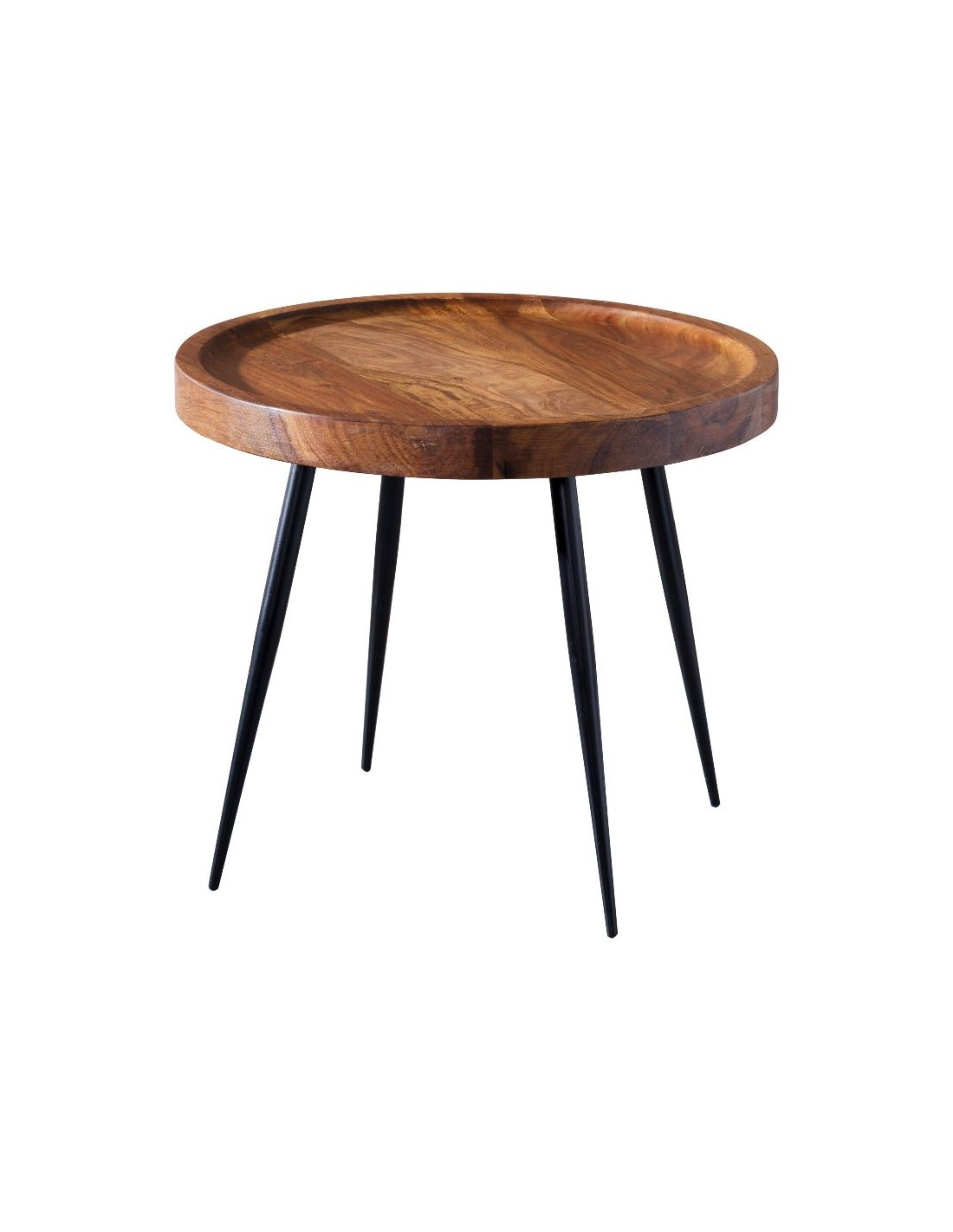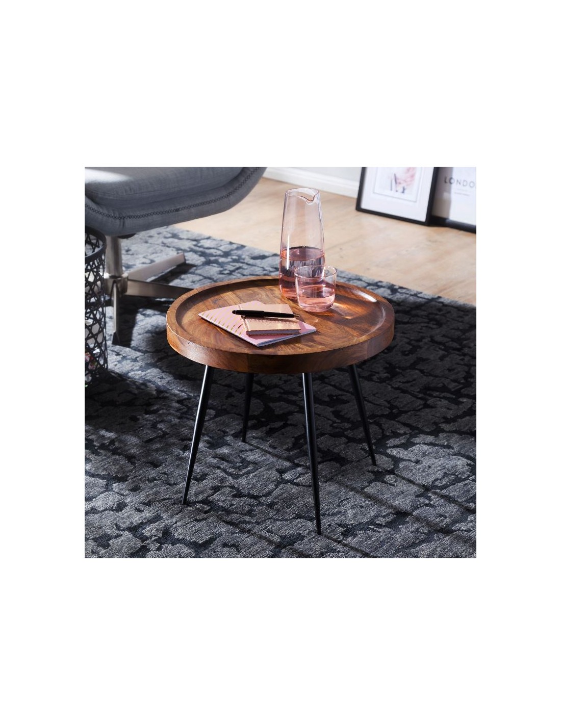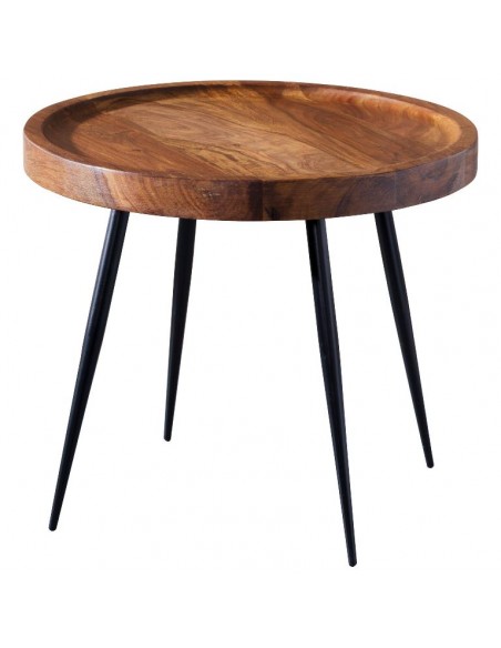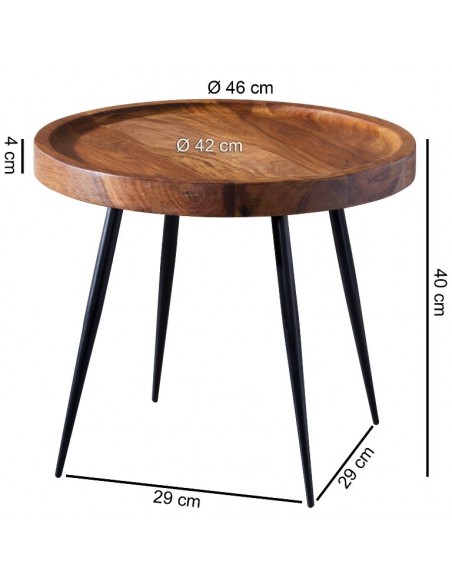 Sofabord i metal og sheeshamtræ Ø46 cm - Sort/Brun