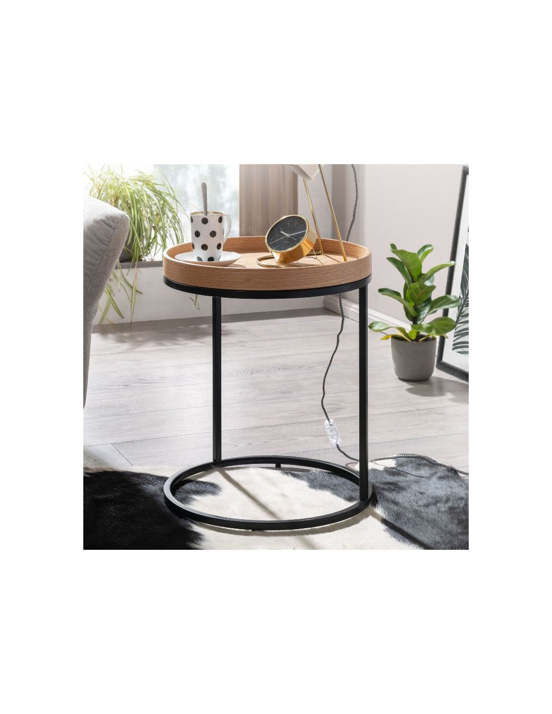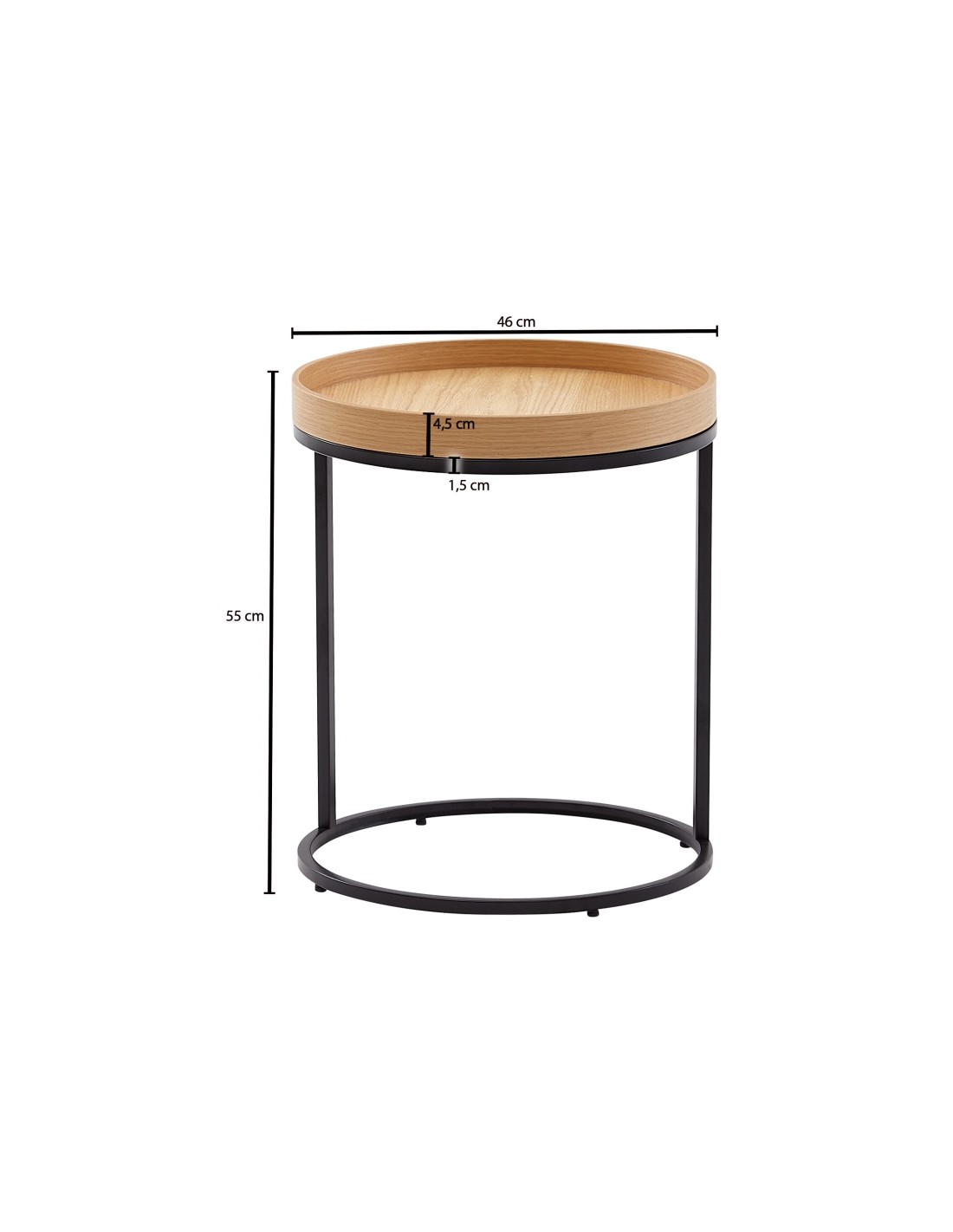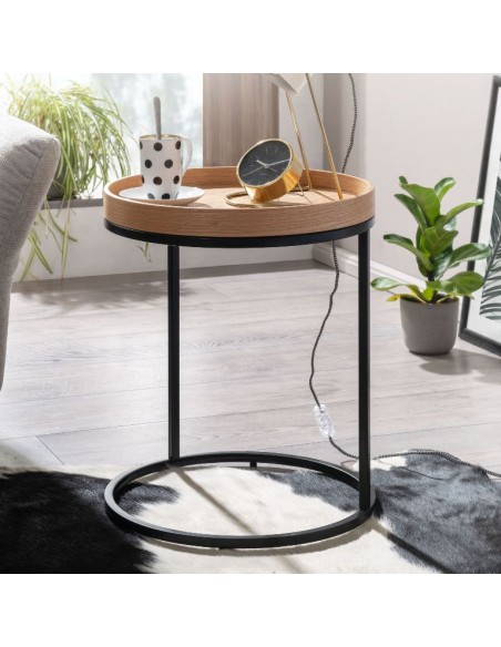 Sofabord i metal og mdf H55 x Ø46 cm - Sort/Natur