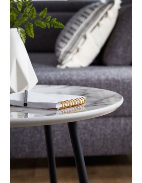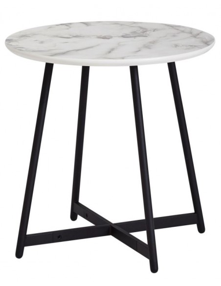 Sofabord i metal og mdf H48,5 x Ø50 cm - Sort/Marmoriseret hvid