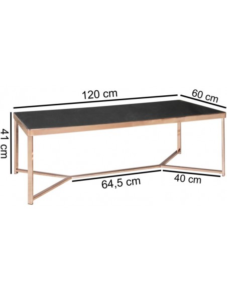 Sofabord fremstillet i kobberfarvet metal og spejl sort glas. Bordet måler 41 cm i højden og 120 x 60 cm i bredde og dybde.