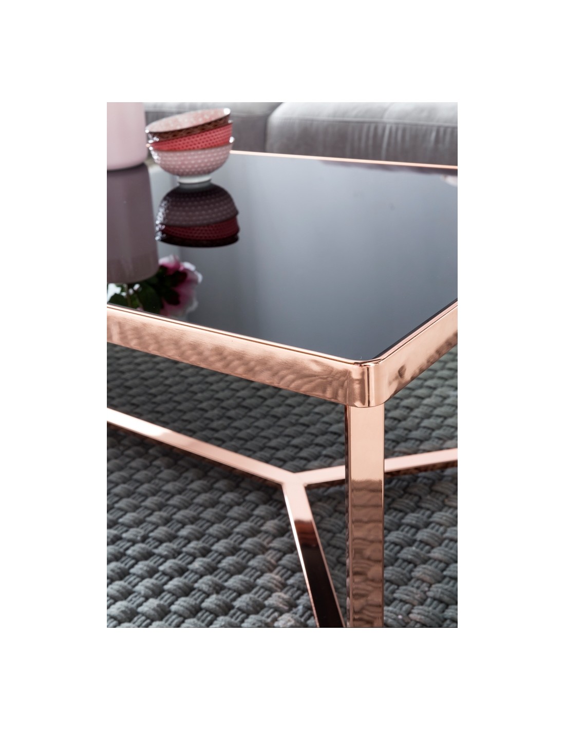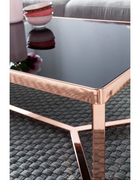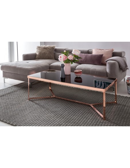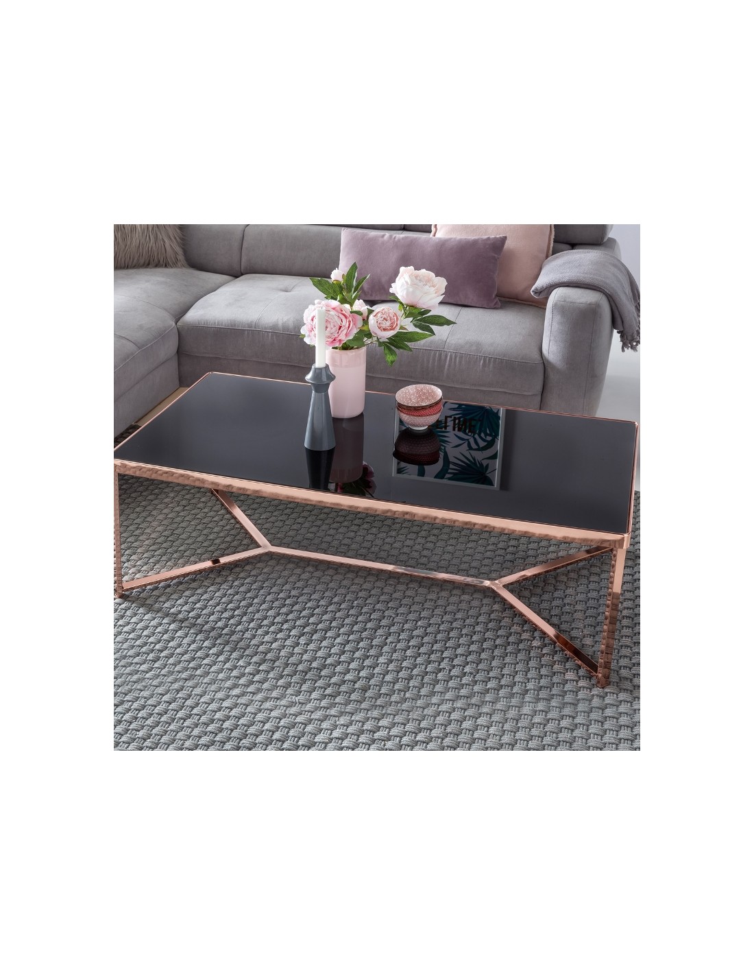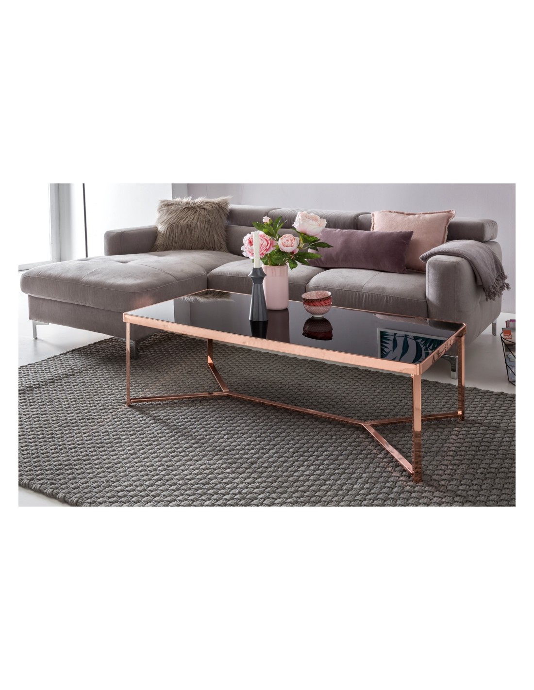 Sofabord i metal og glas 120 x 60 cm - Kobber/Spejl sort