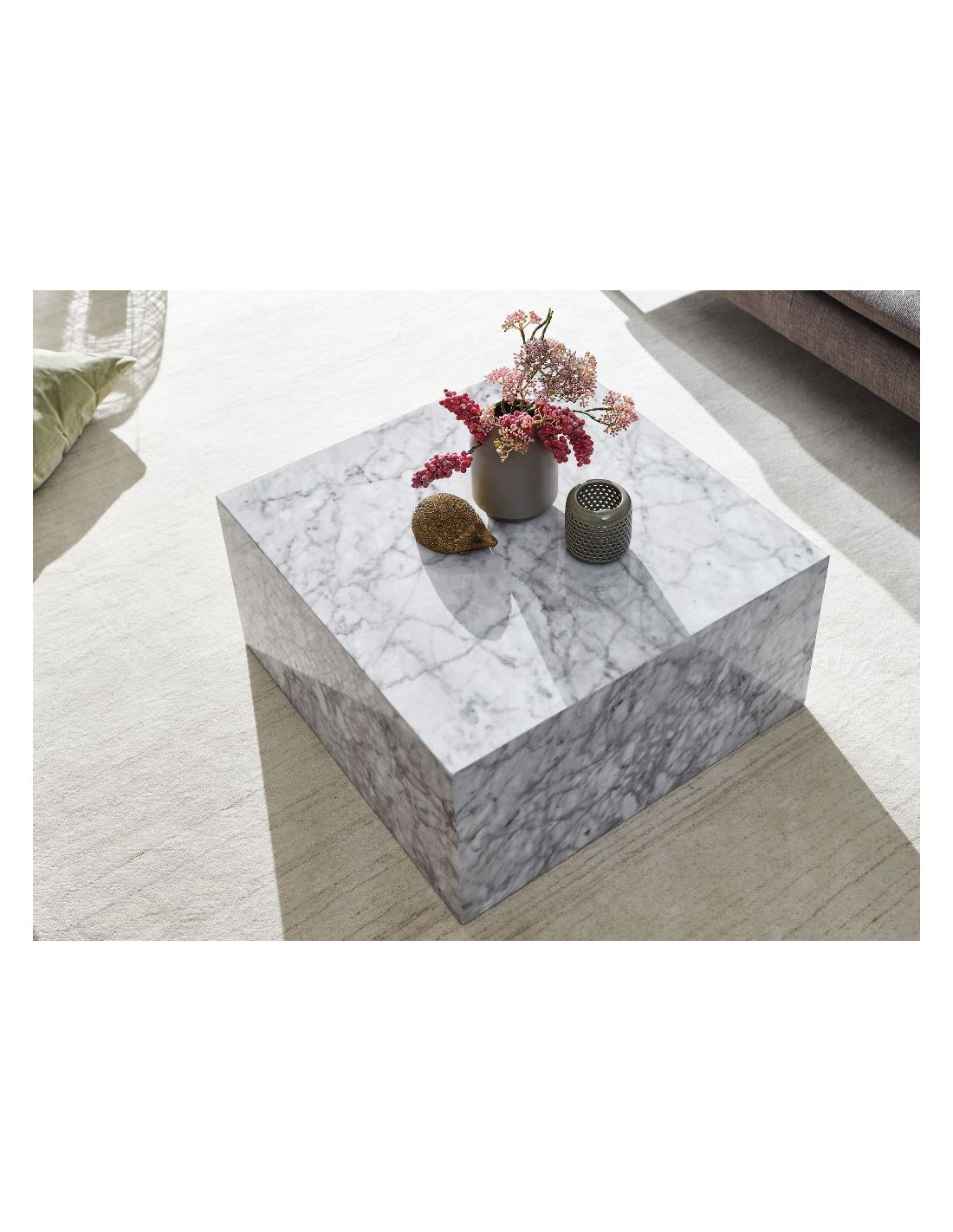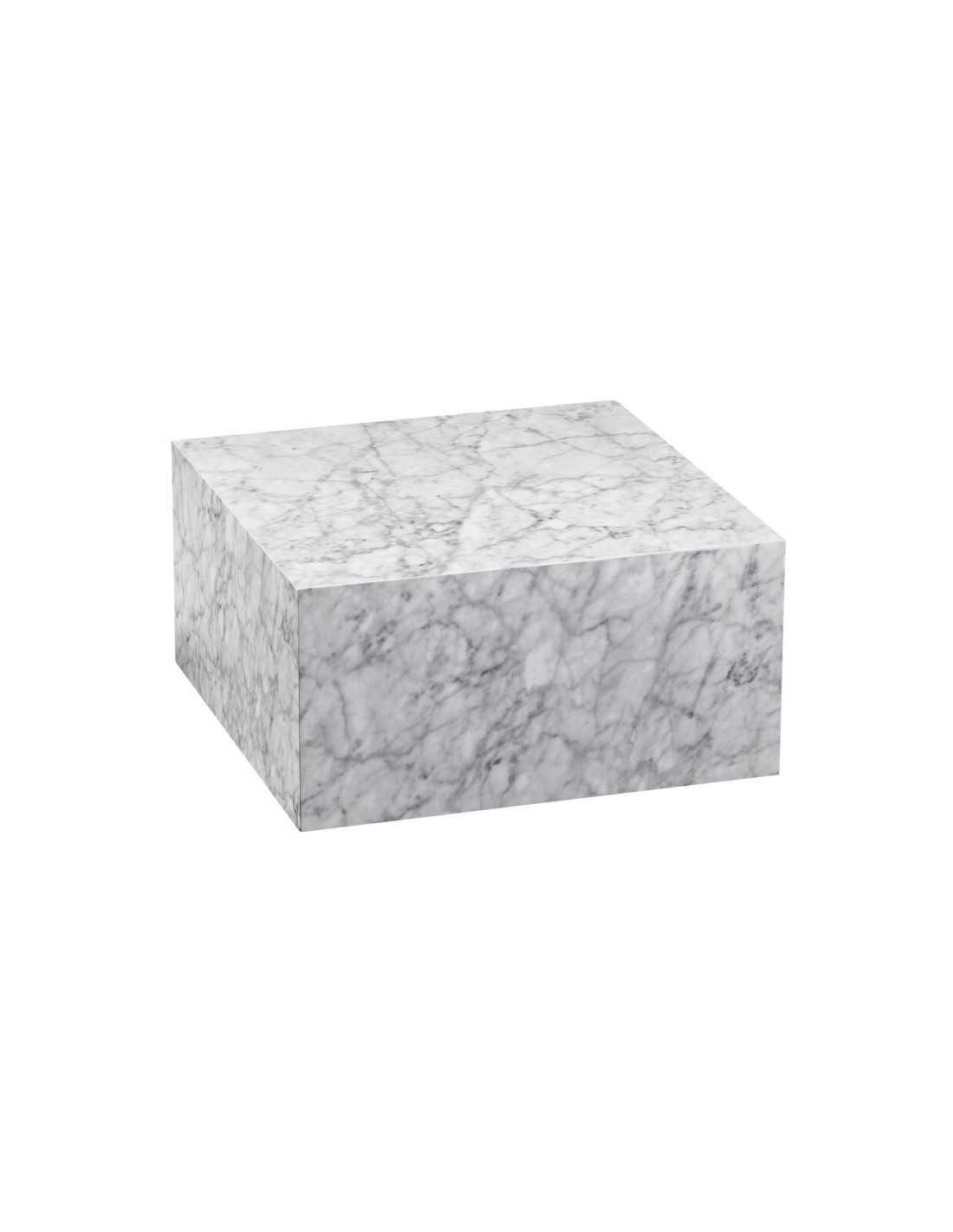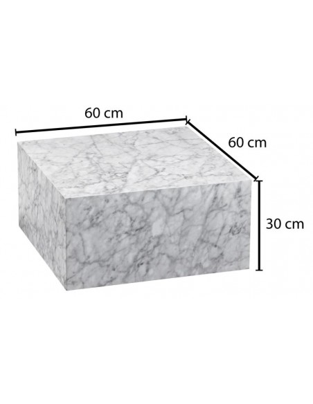 Sofabord fremstillet i marmoriseret hvid mdf. Bordet måler 30 cm i højden og 60 x 60 cm i bredde og dybde.