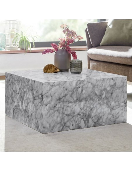Sofabord i mdf 60 x 60 cm - Marmoriseret hvid