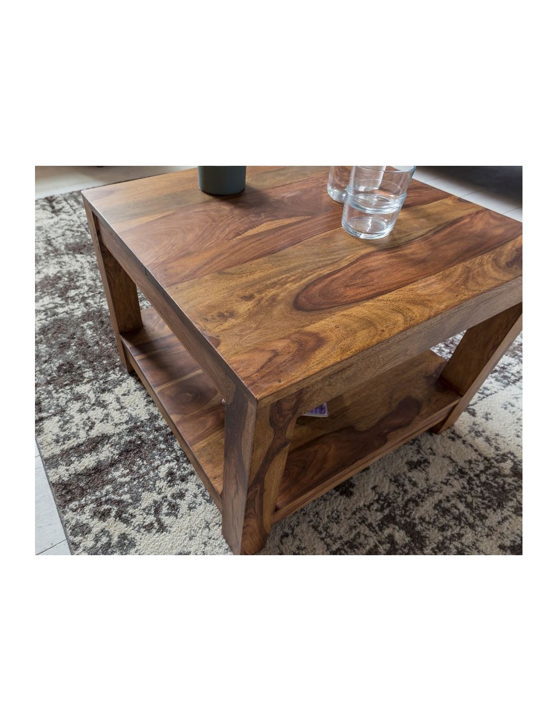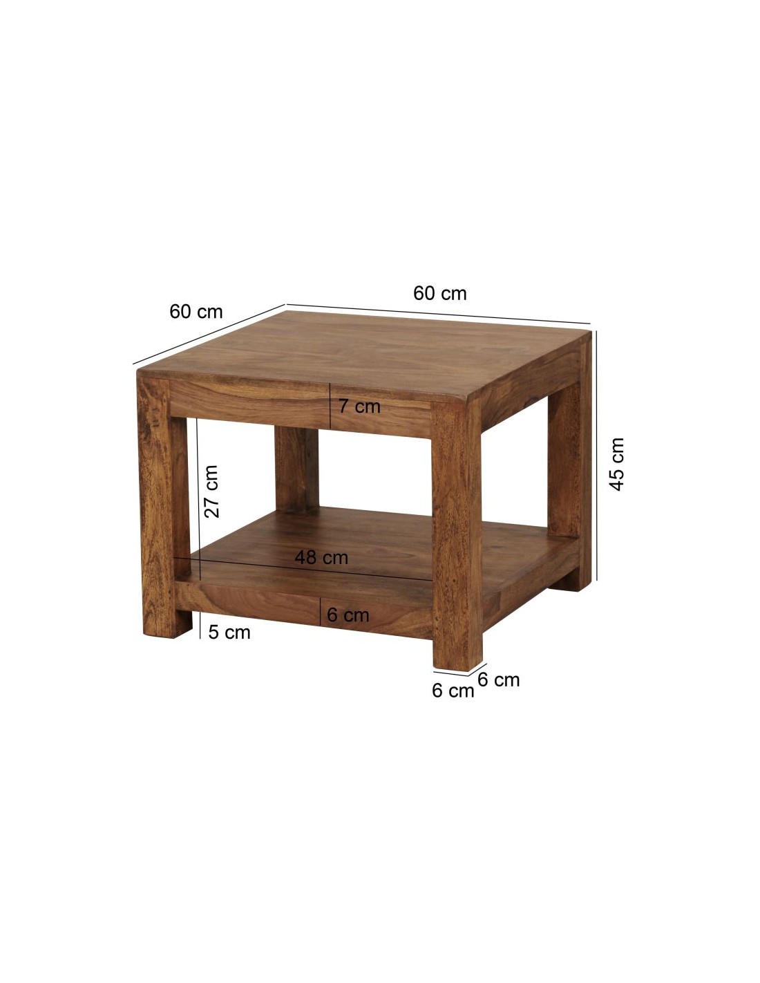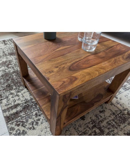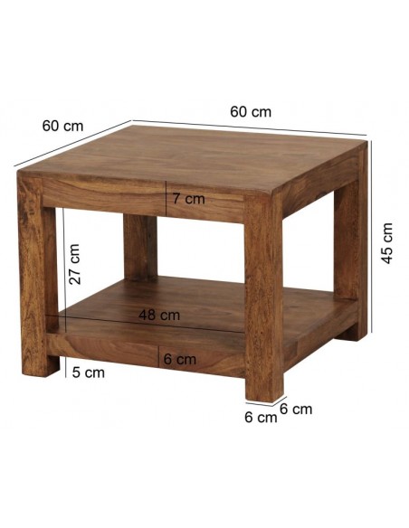 Sofabord fremstillet i sheeshamtræ. Bordet måler 45 cm i højden og 60 x 60 cm i bredde og dybde.