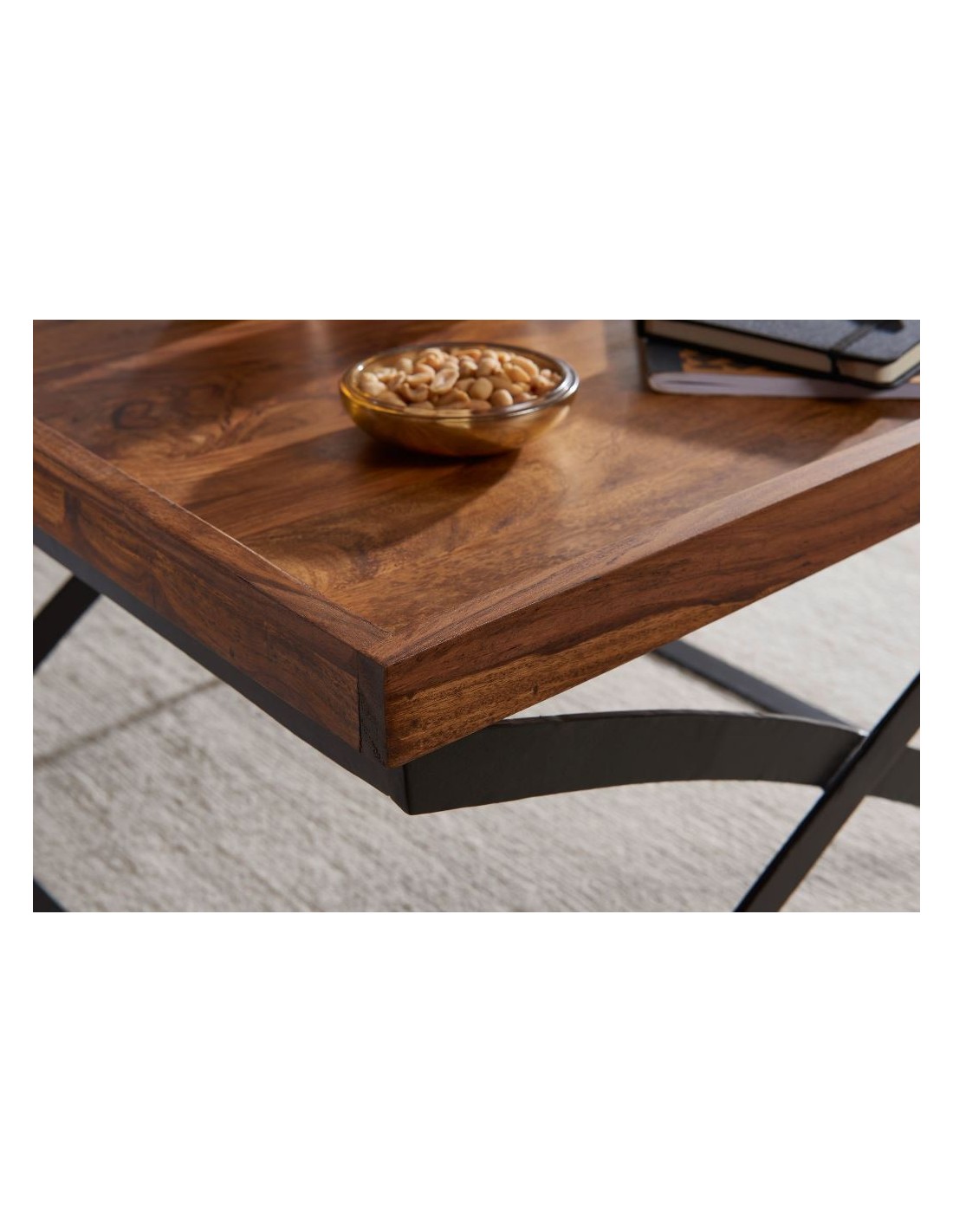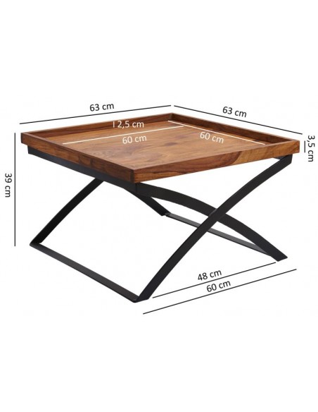 Sofabord fremstillet i metal og sheeshamtræ. Bordet måler 39 cm i højden og 63 x 63 cm i bredde og dybde.