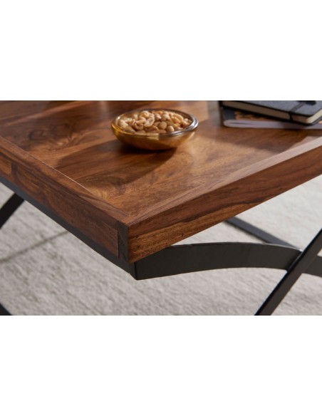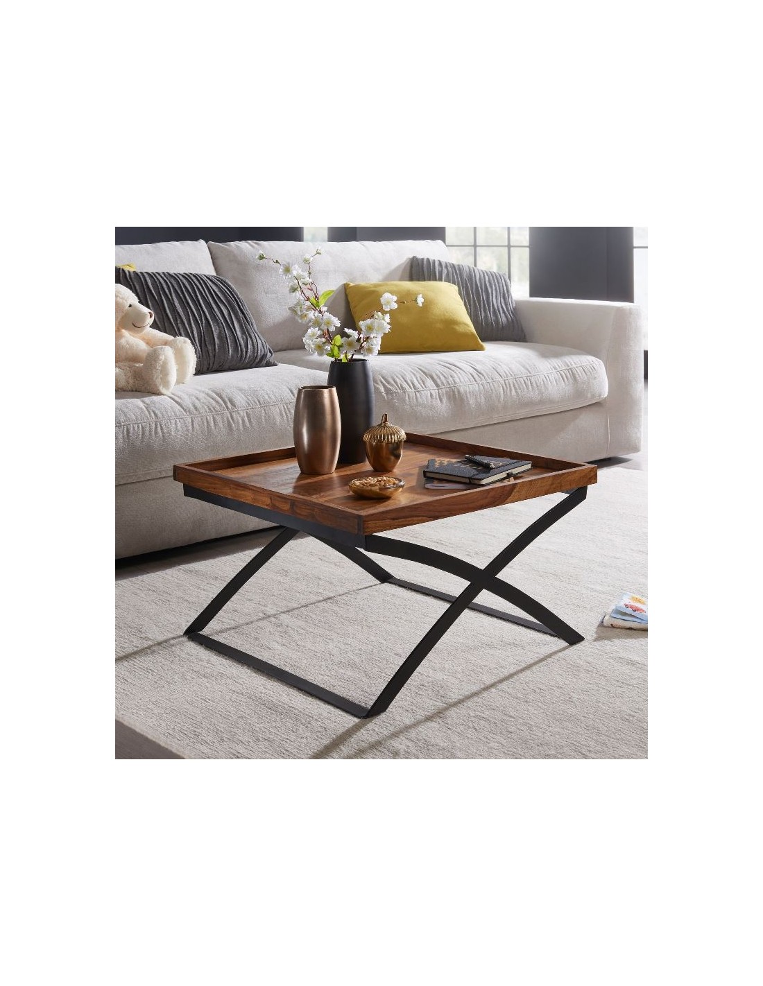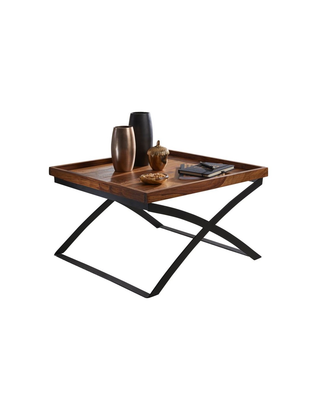 Sofabord i metal og sheeshamtræ 63 x 63 cm - Sort/Brun