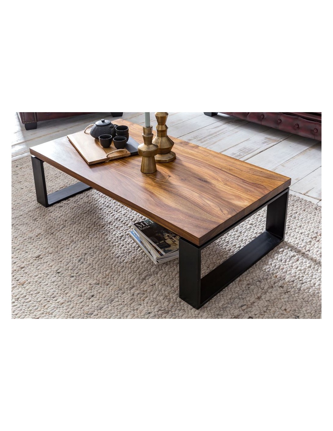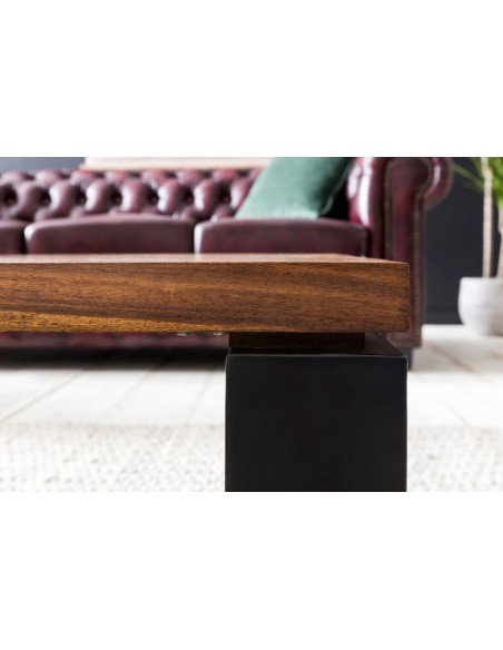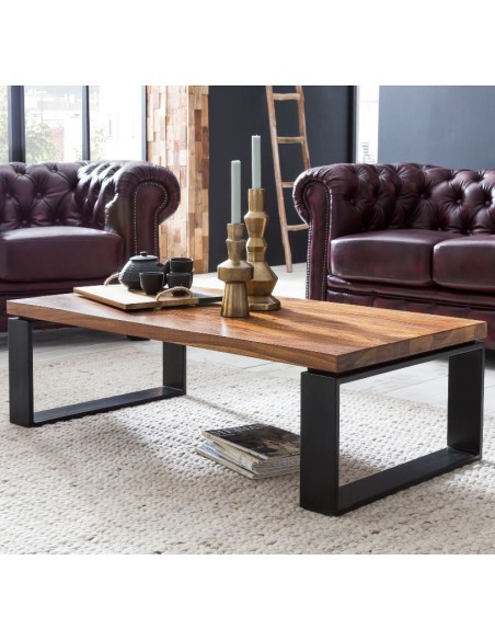 Sofabord fremstillet i metal og sheeshamtræ. Bordet måler 35 cm i højden og 115 x 60 cm i bredde og dybde.