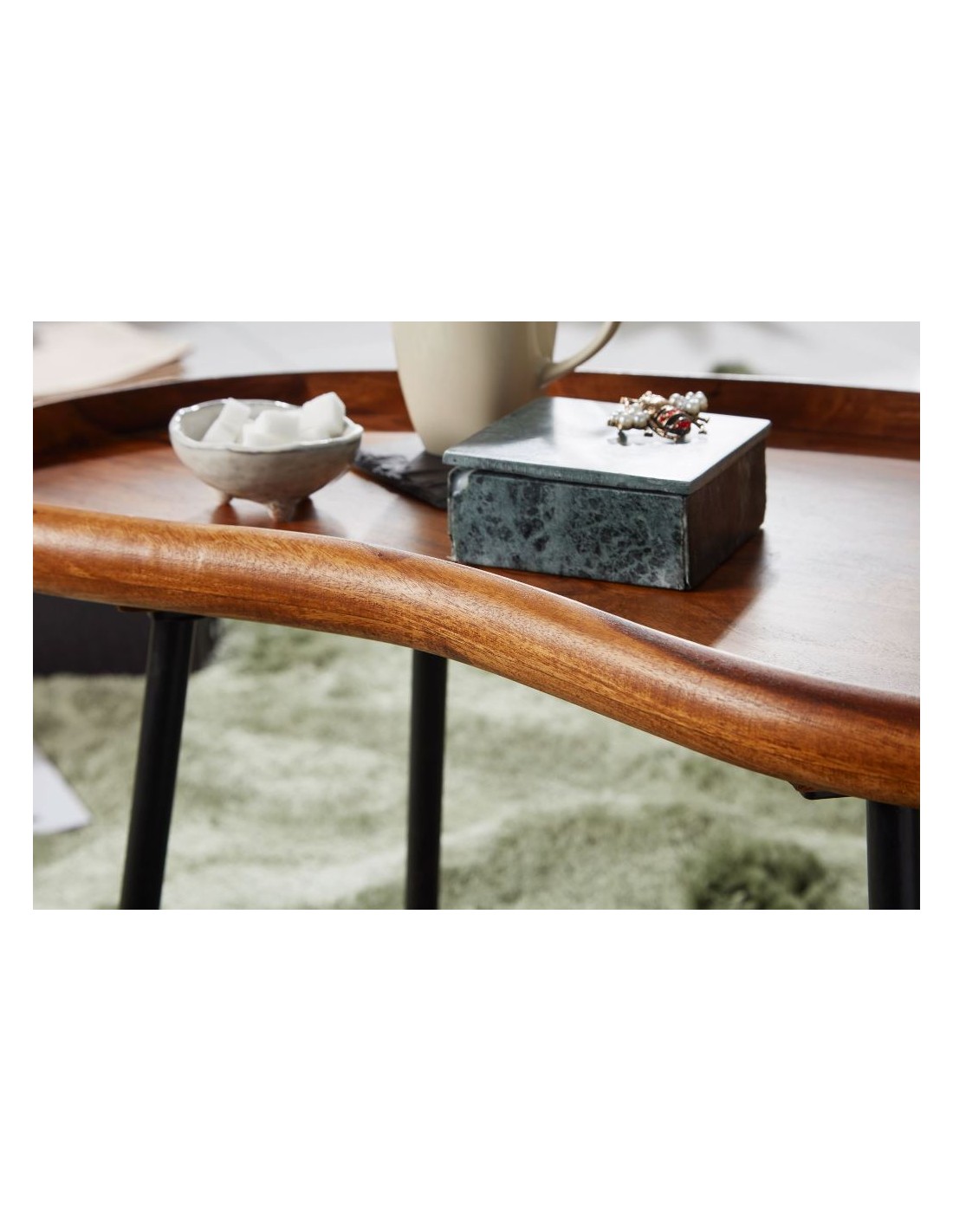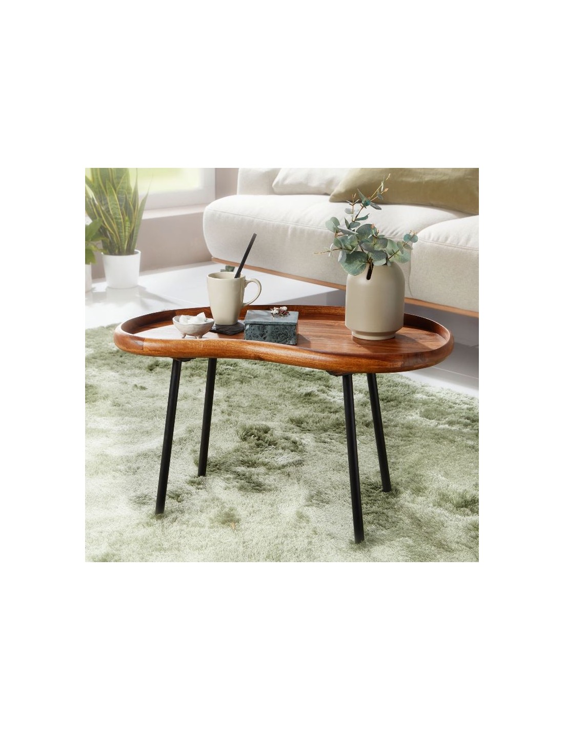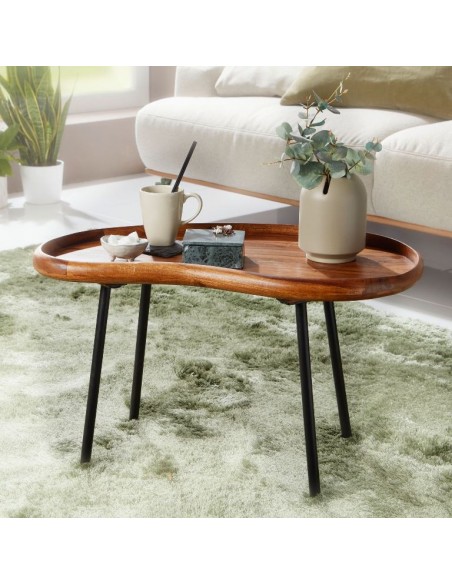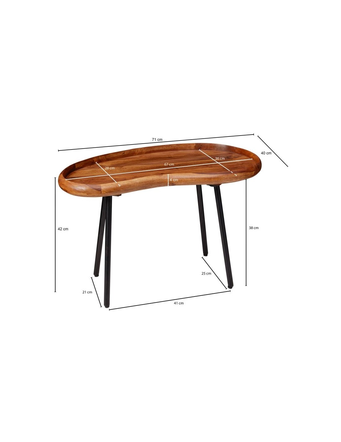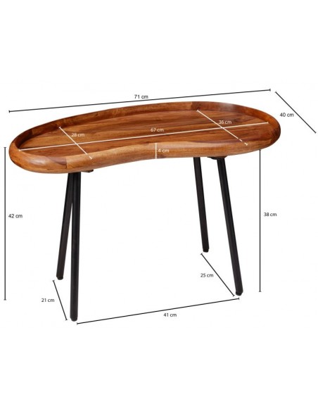 Sofabord fremstillet i metal og sheeshamtræ. Bordet måler 42 cm i højden og 71 x 40 cm i bredde og dybde.