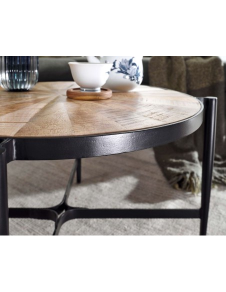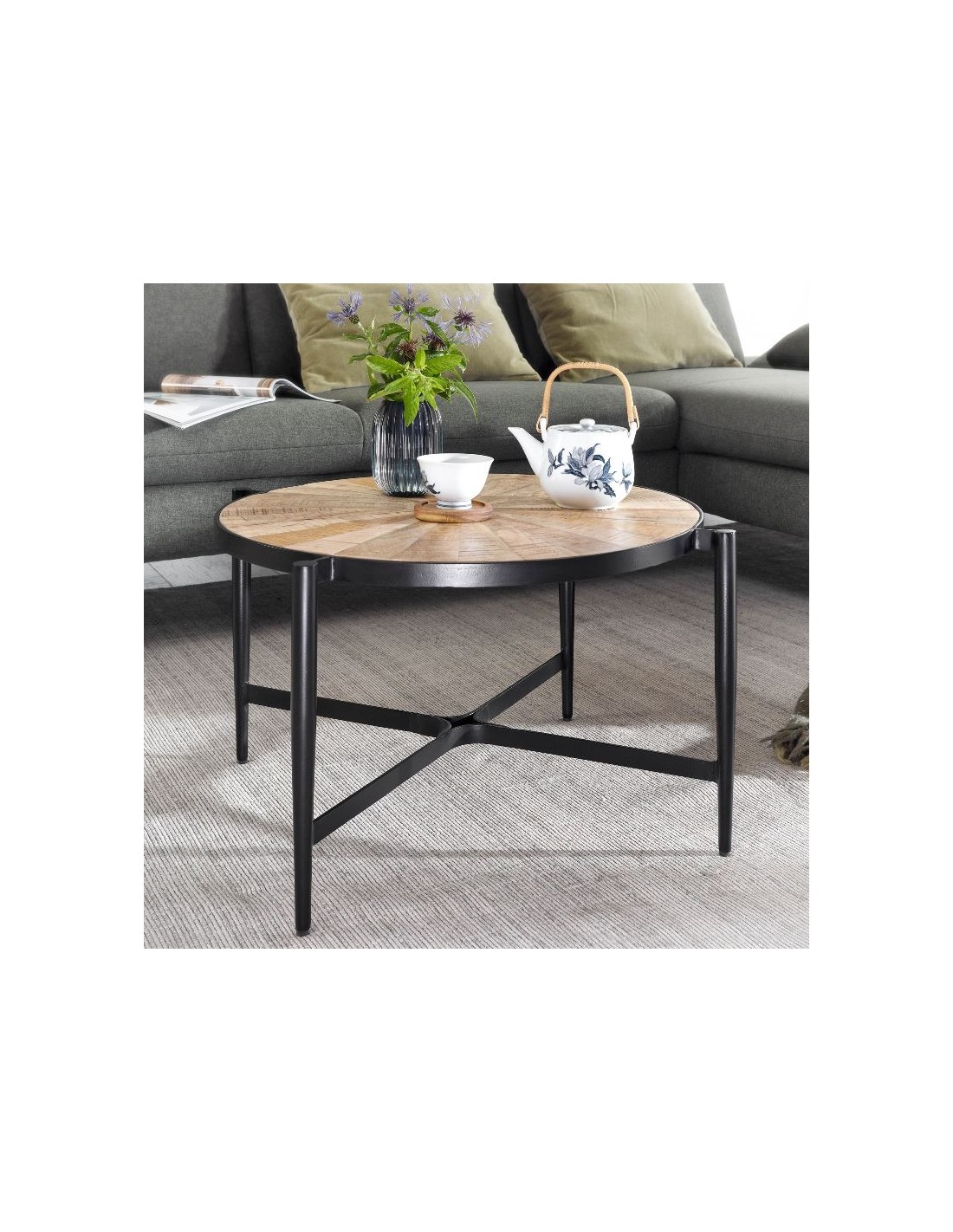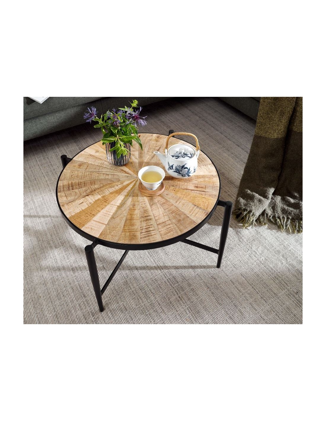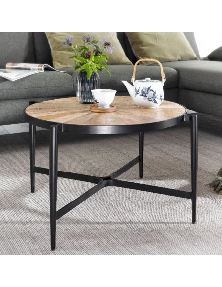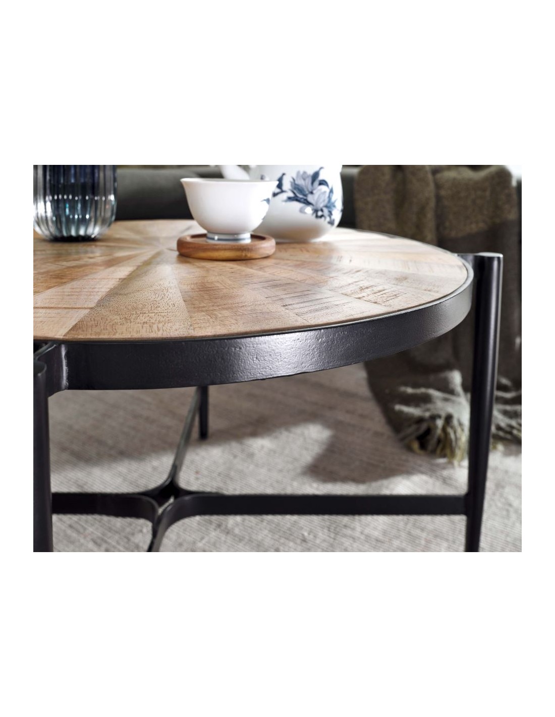 Sofabord i jern og mangotræ H38 x Ø70 cm - Sort/Natur