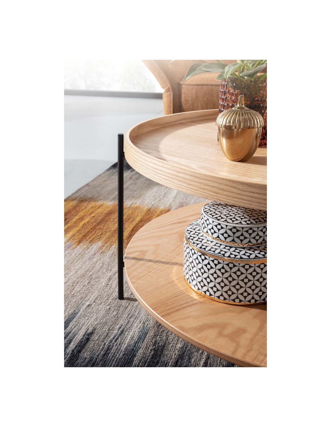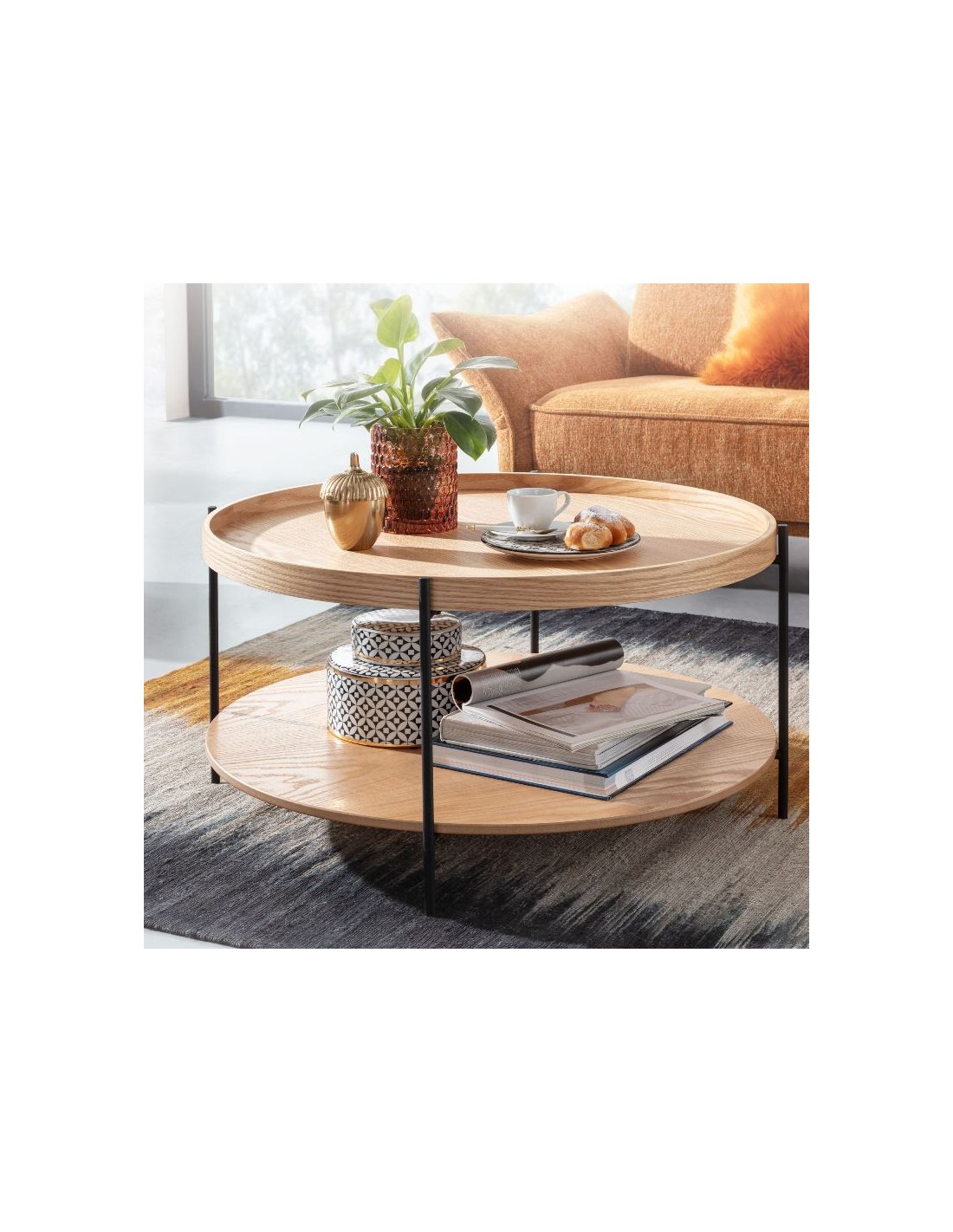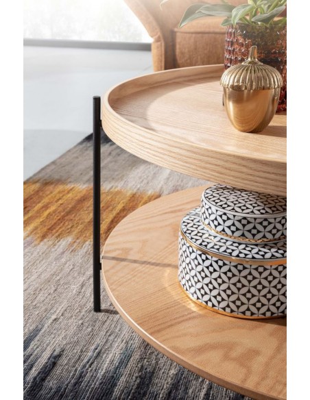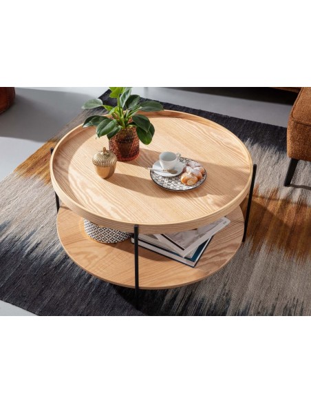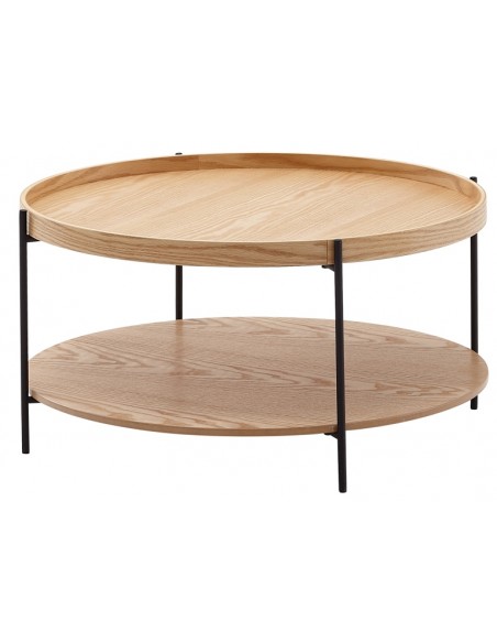 Sofabord i metal og egetræsfinér H40 x Ø78 cm - Sort/Eg
