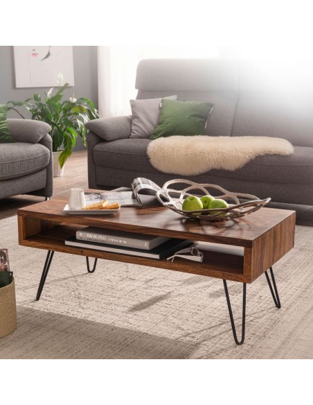 Sofabord i metal og mangotræ 100 x 50 cm - Sort/Brun