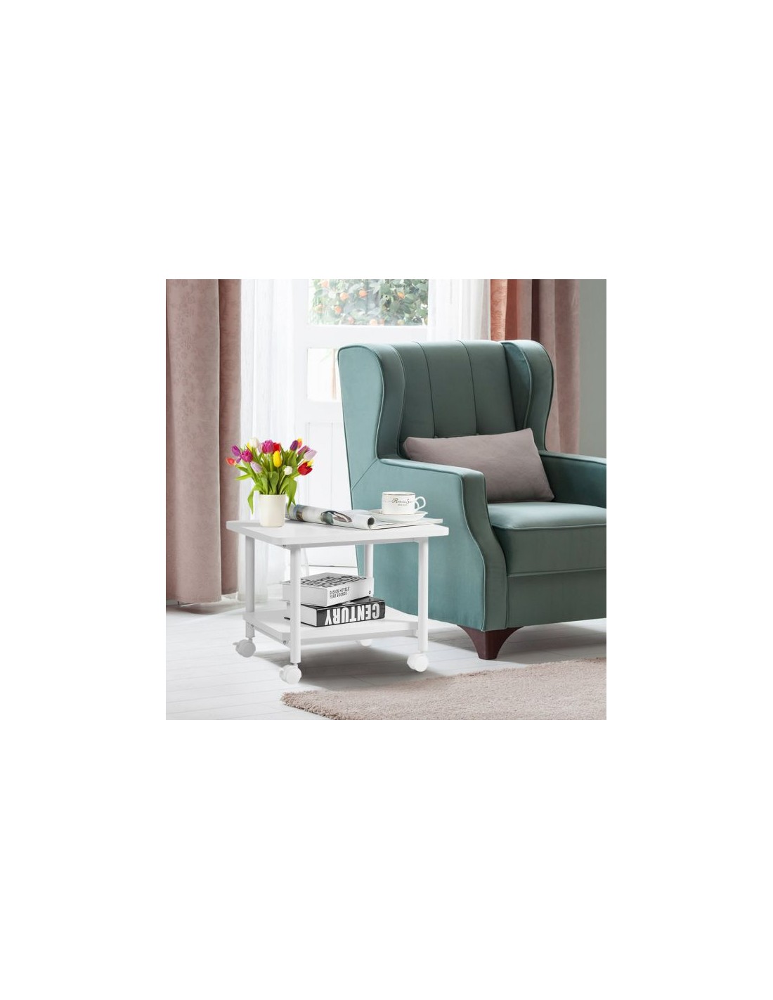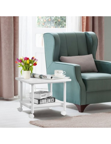 Sofabord på hjul i metal og mdf 49 x 40 cm - Hvid