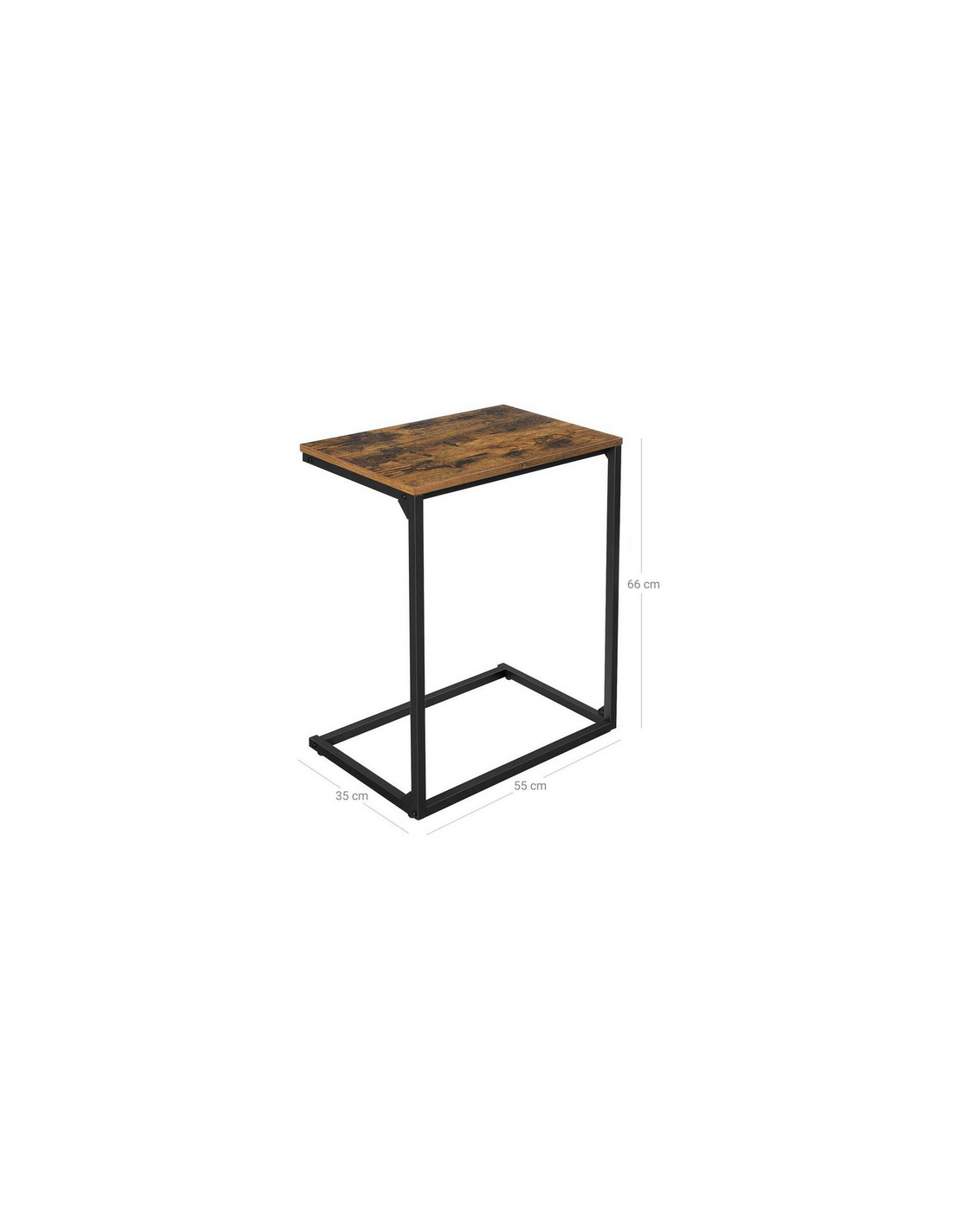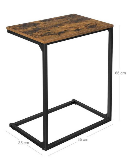 Sofabord udført i et design af sortlakeret metal og brun møbelplade. Sofabordet måler 66 cm i højden og 55 x 35 cm i bredde og dybde.