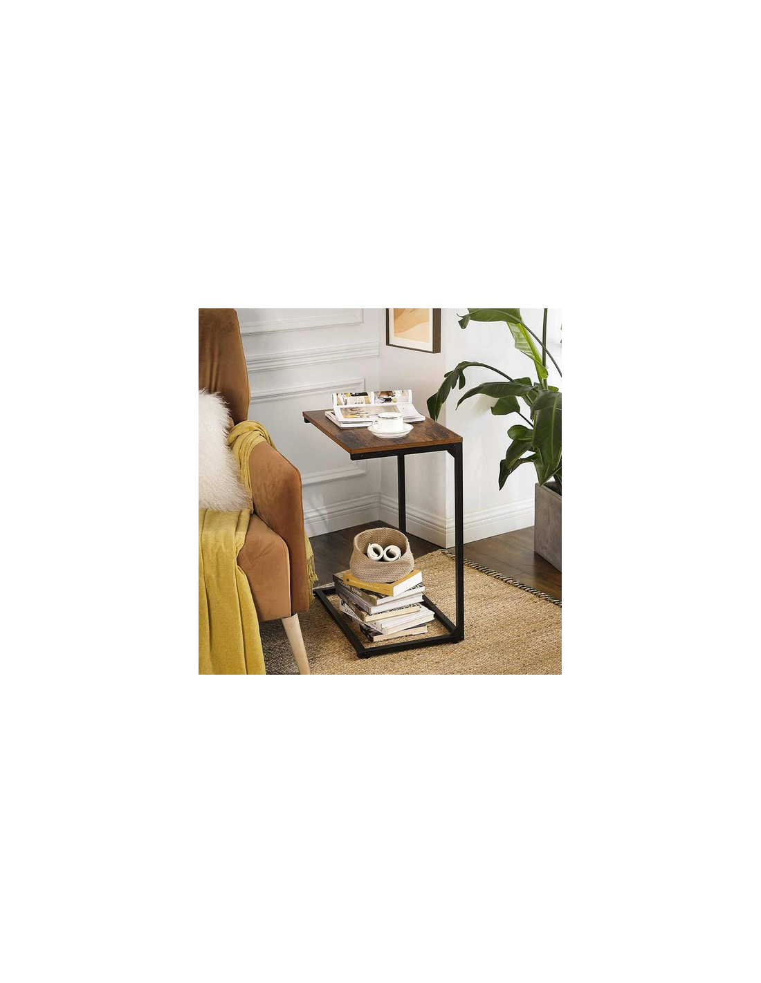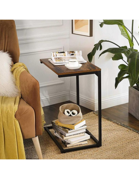 Sofabord i metal og møbelplade H66 x B55 x D35 cm - Sort/Brun