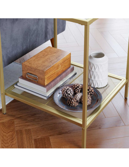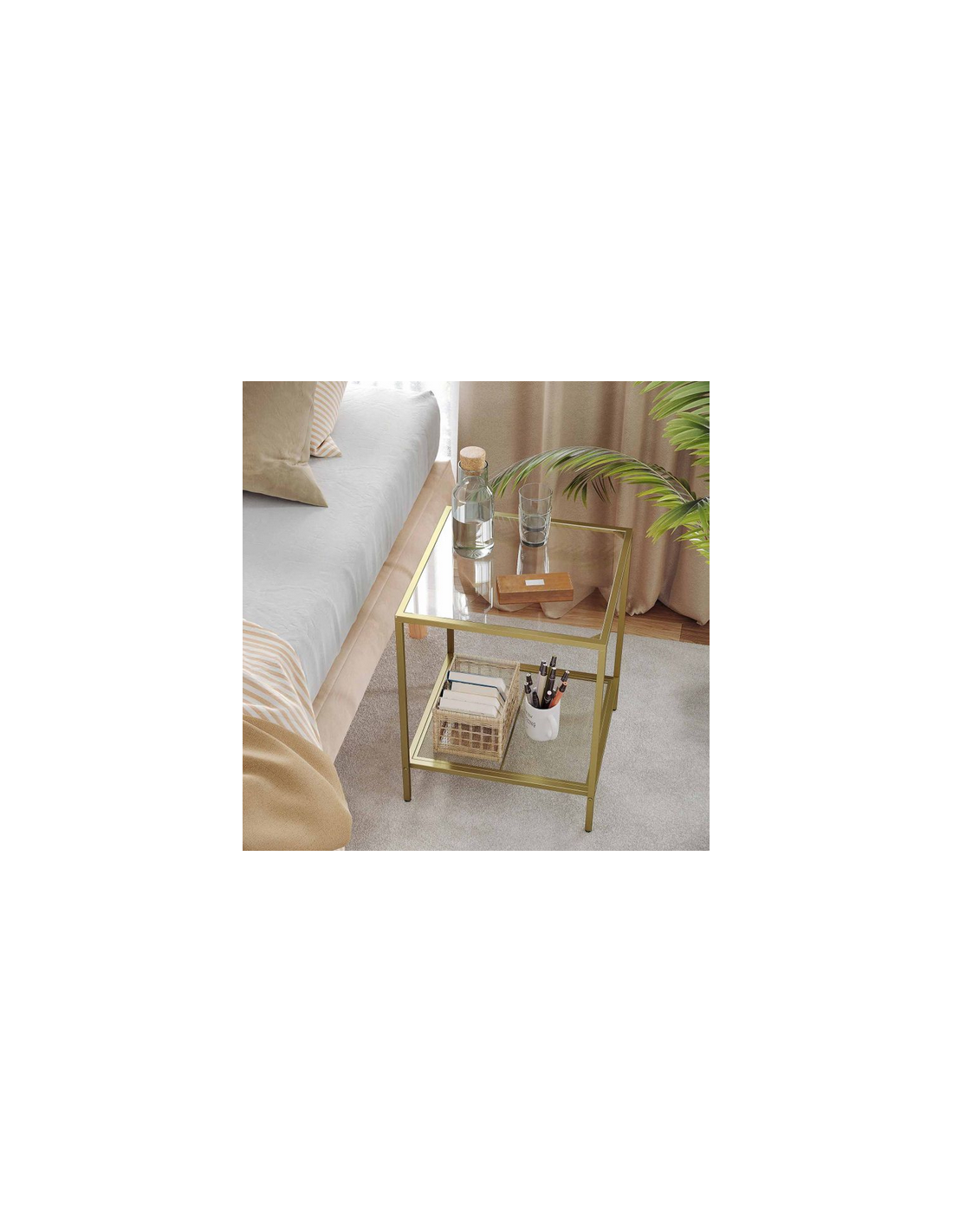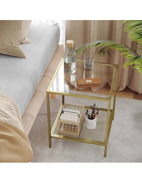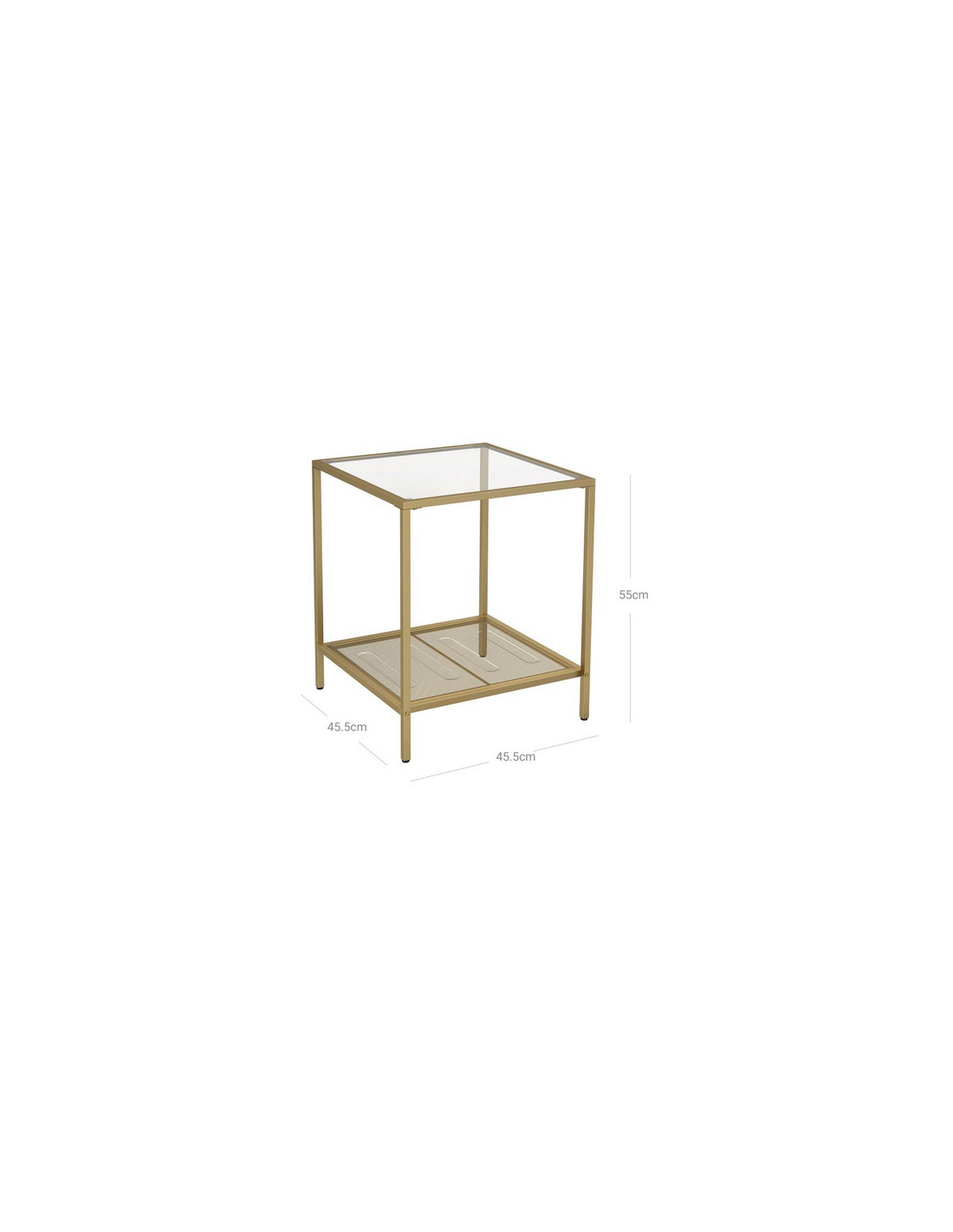 Sofabord i metal og glas H55 x B45,5 x D45,5 cm - Guld/Klar