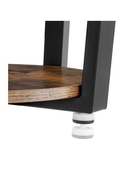 Sofabord udført i et design af sortlakeret metal og brun møbelplade. Sofabordet måler 57 cm i højden og 50 cm i diameter.