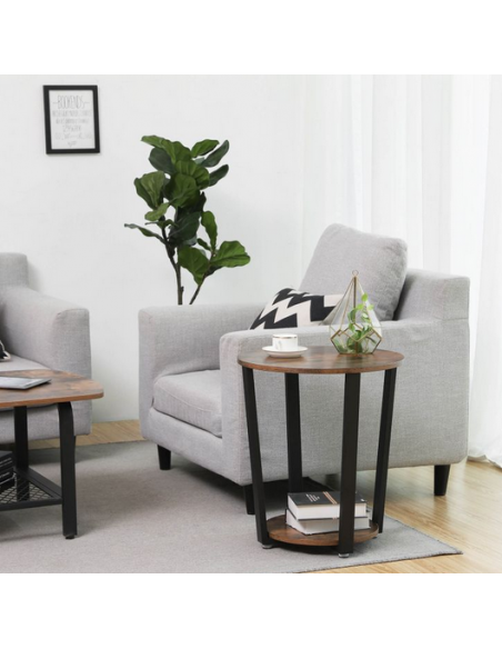 Sofabord i metal og møbelplade H57 x Ø50 cm - Sort/Brun