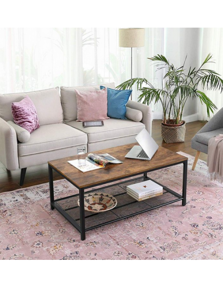 Sofabord i metal og møbelplade H45 x B106 x D60 cm - Sort/Brun