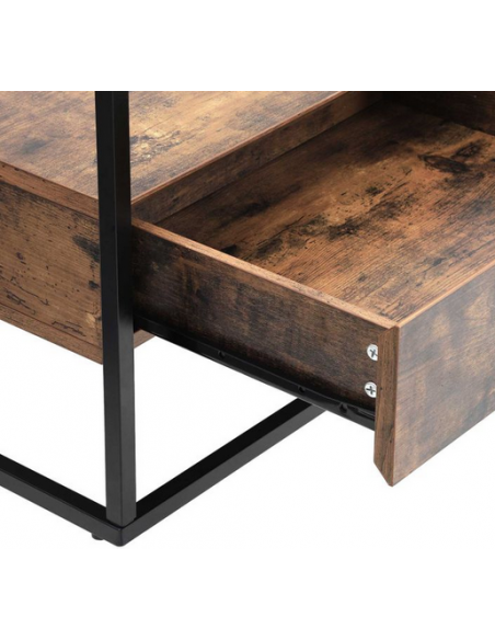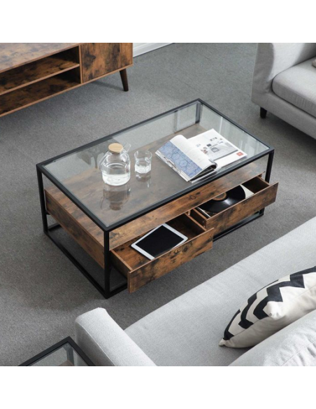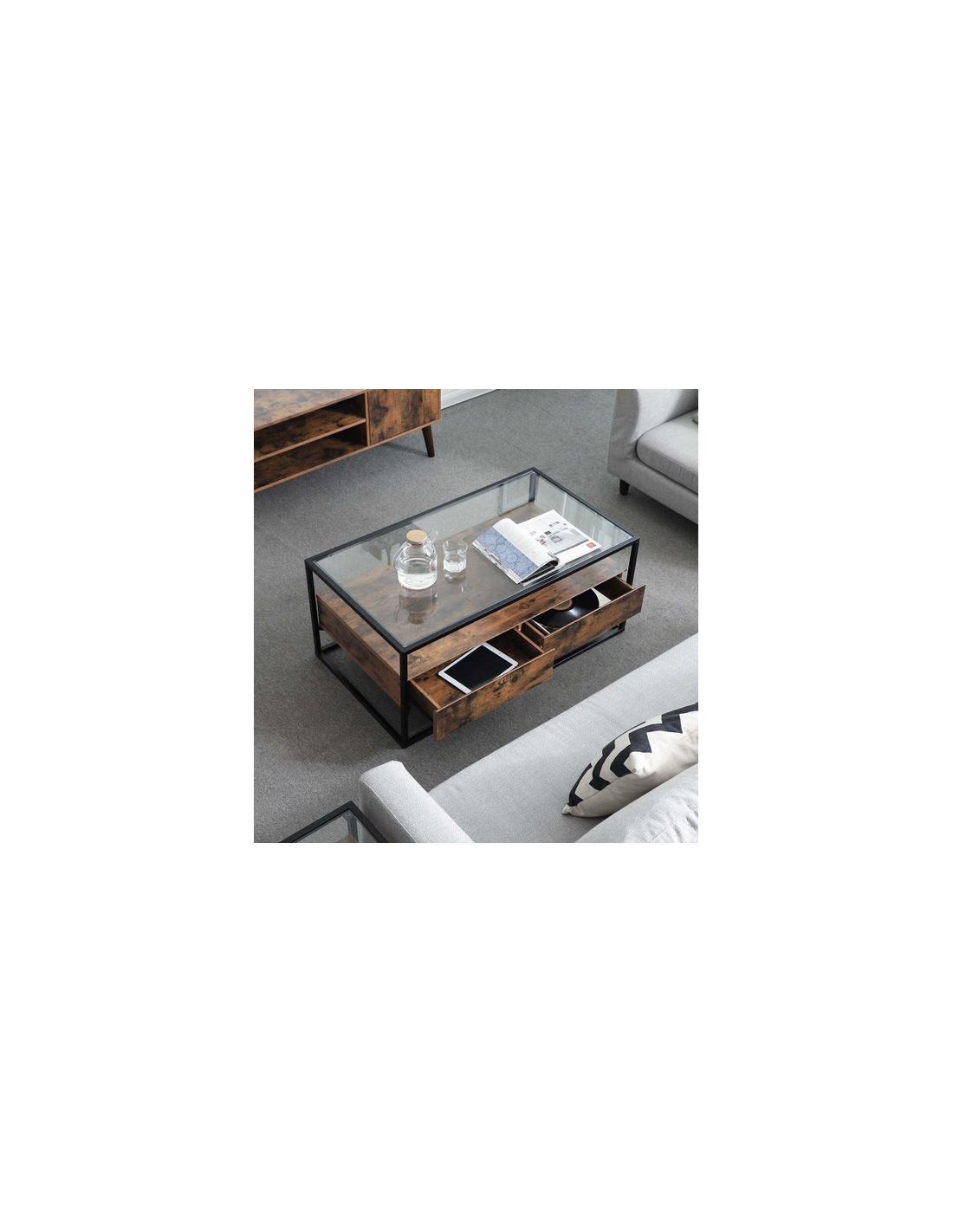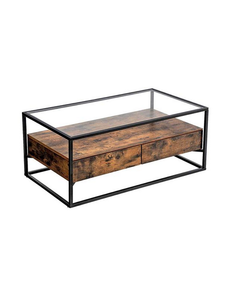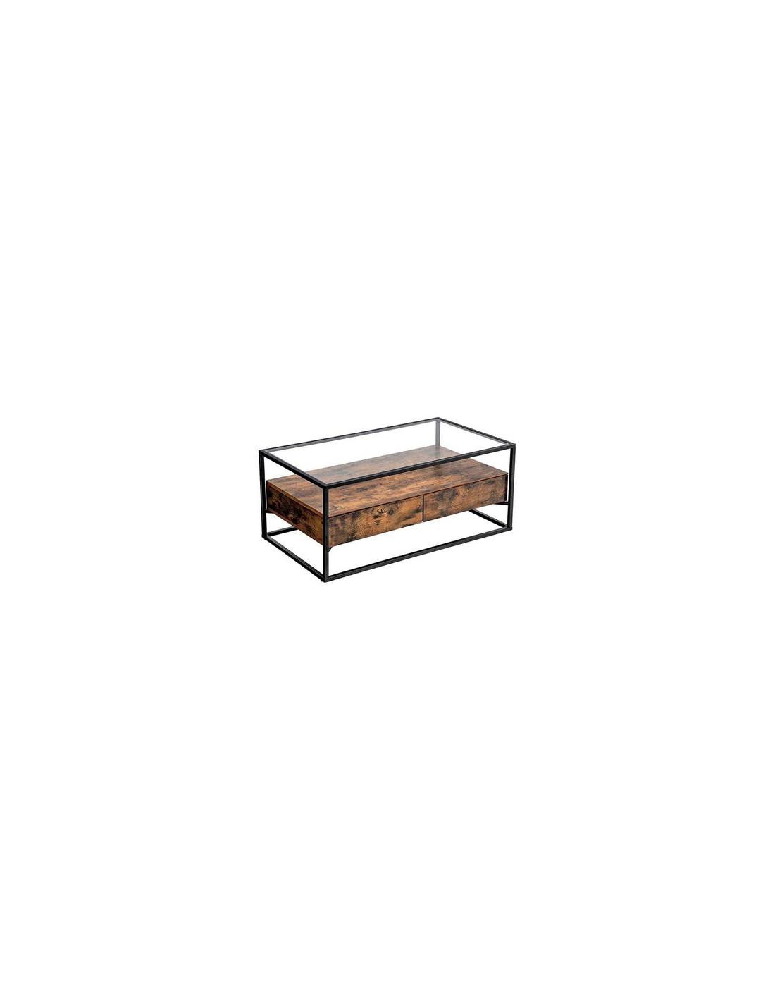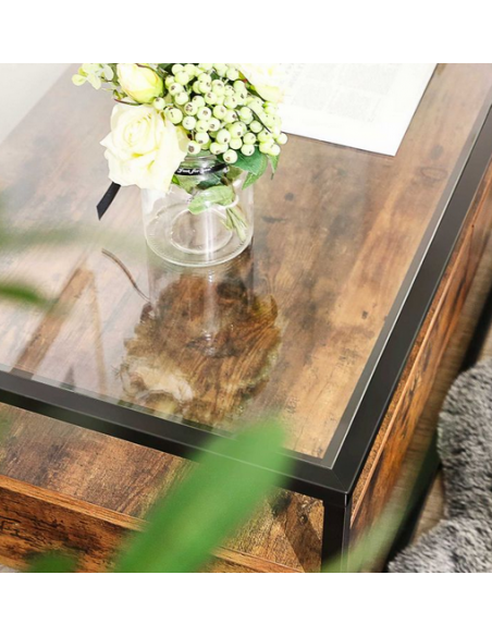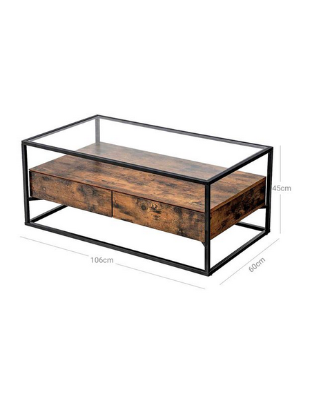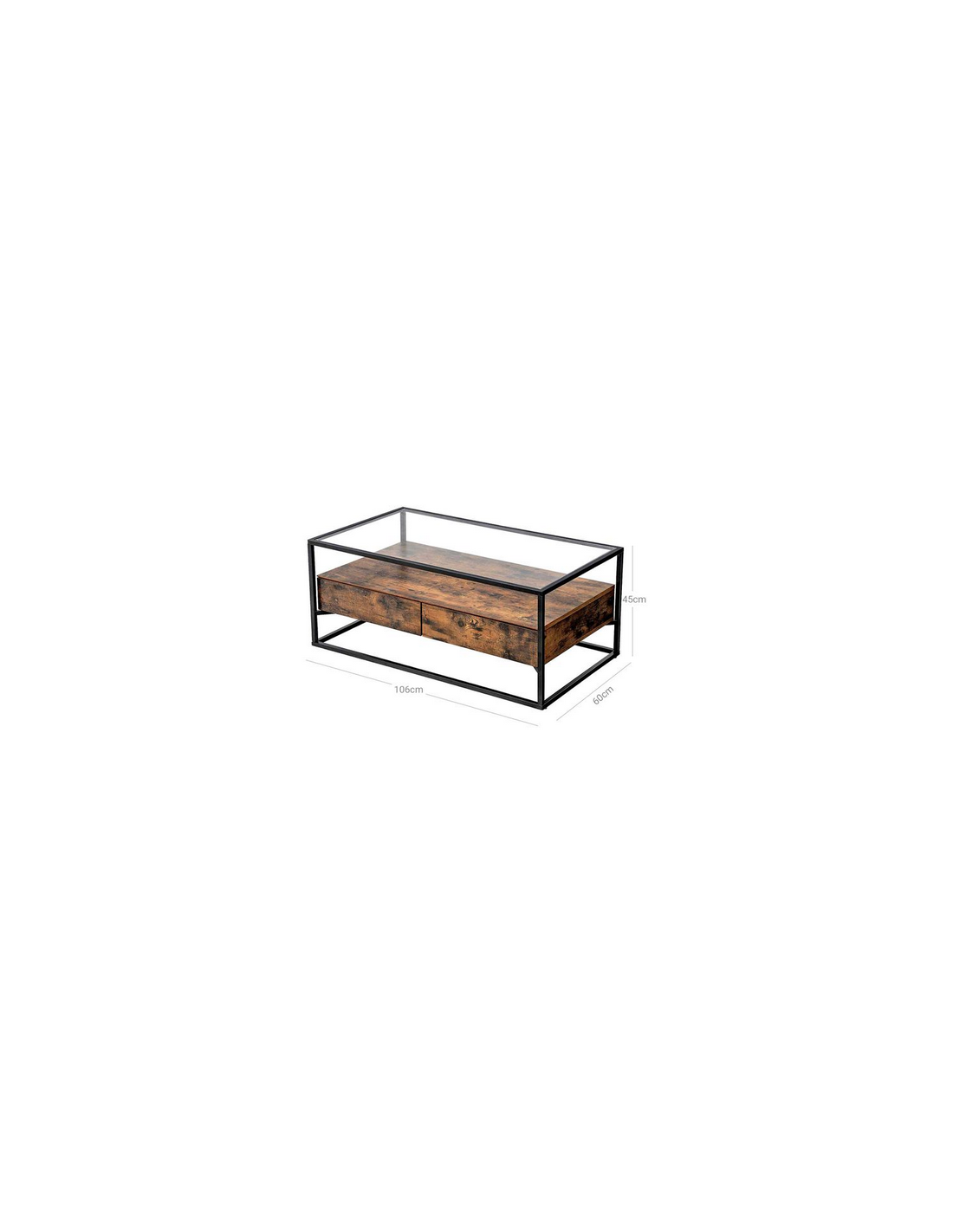 Sofabord i metal, glas og møbelplade H45 x B106 x D60 cm - Sort/Brun