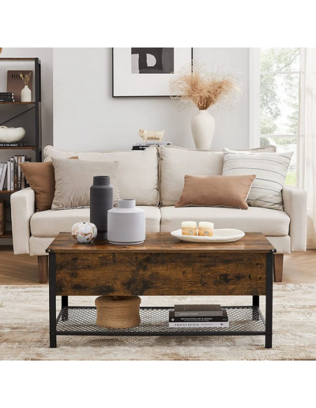 Sofabord i metal og møbelplade H47 x B100 x D55 cm - Sort/Brun