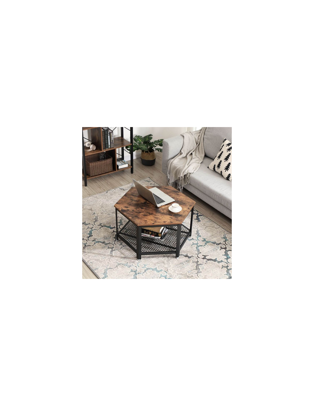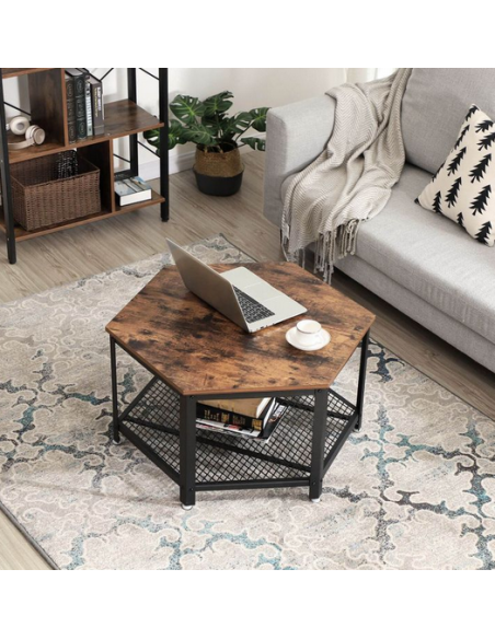 Sofabord i metal og møbelplade H46 x Ø75 cm - Sort/Brun