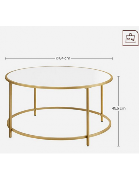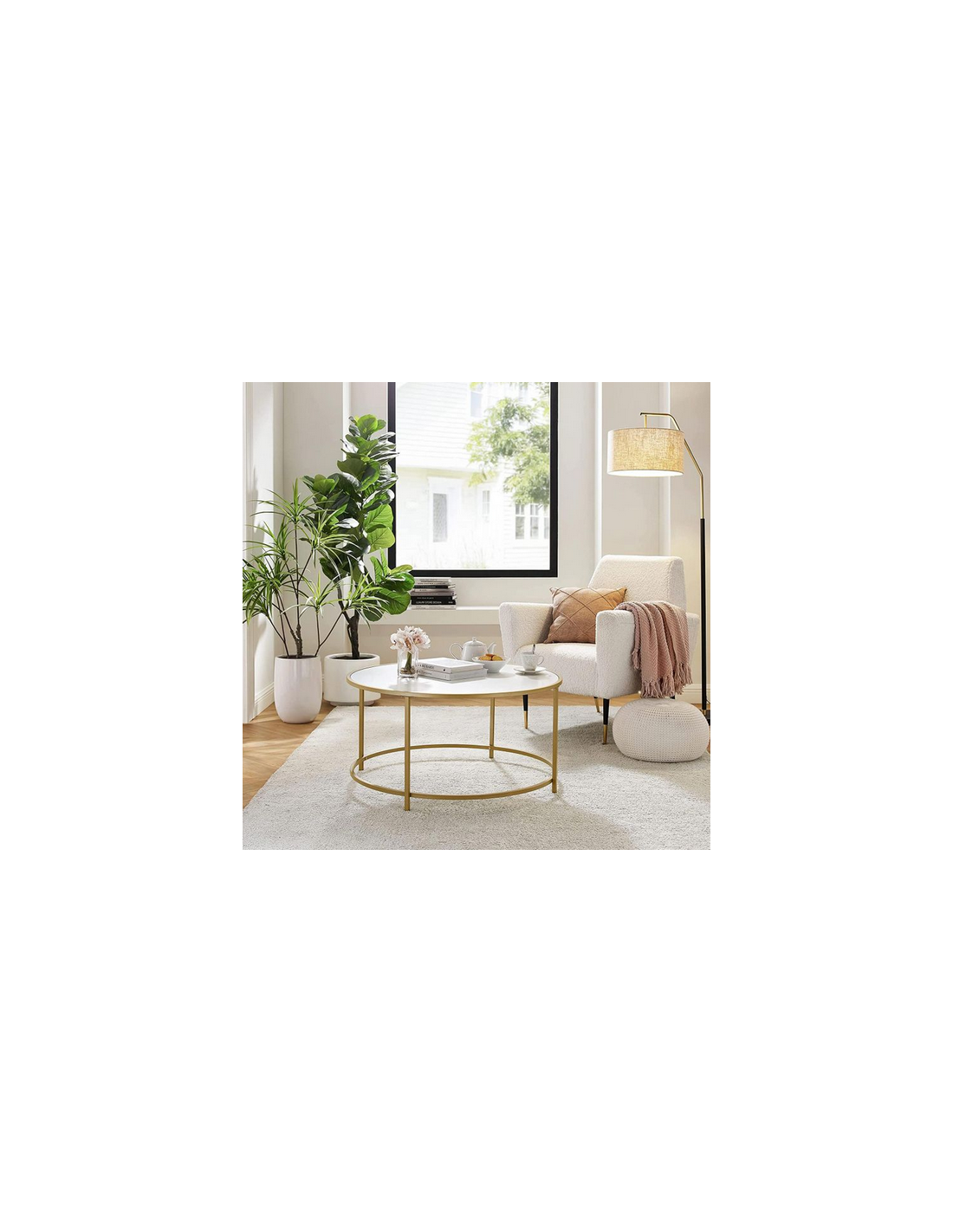 Sofabord i metal og møbelplade H45,5 x Ø84 cm - Guld/Hvid