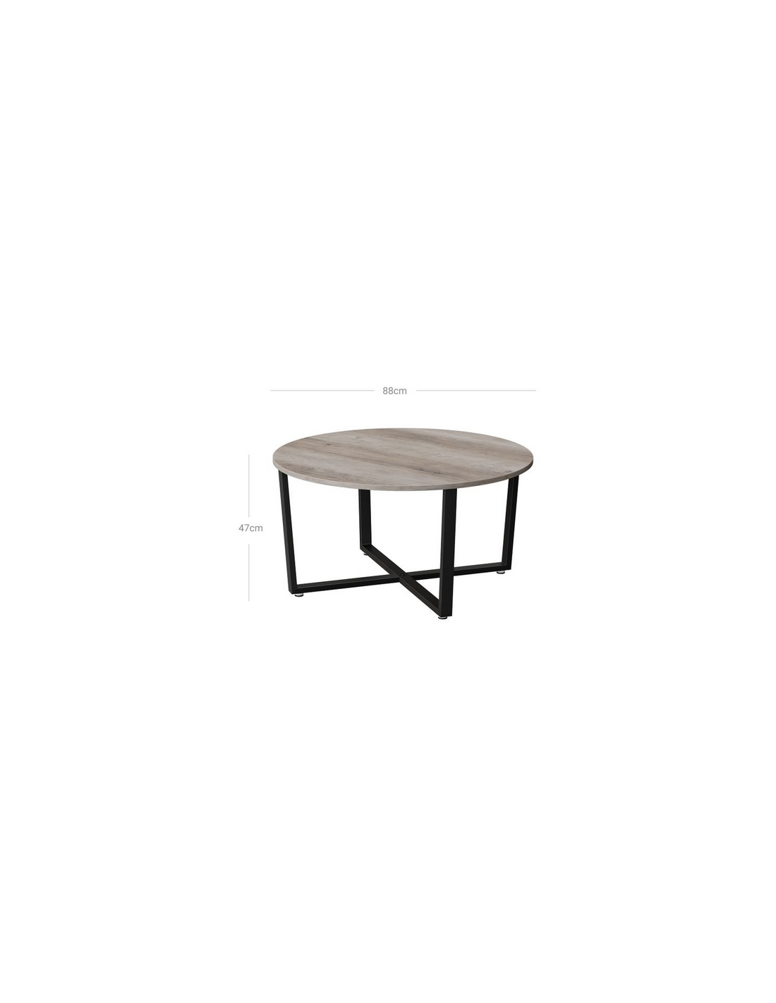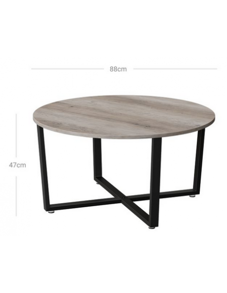 Sofabord udført i et design af sortlakeret metal og grå møbelplade. Sofabordet måler 47 cm i højden og 88 cm i diameter.
