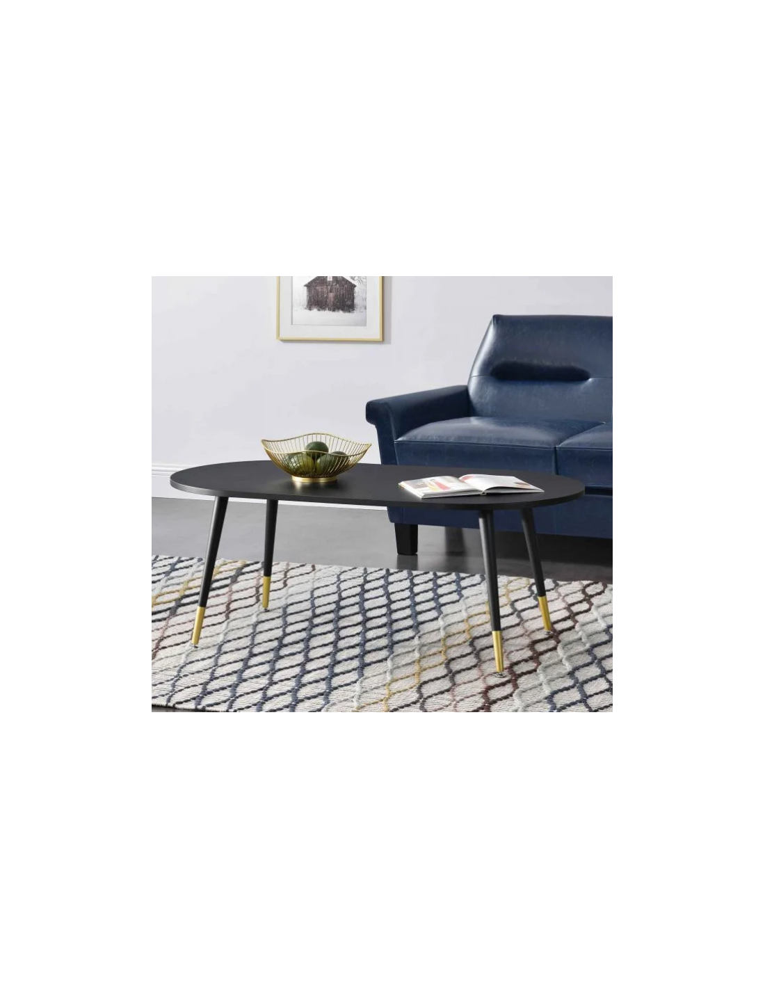 Sofabord i mdf og metal H47 x B120 x D60 cm - Sort/Messing