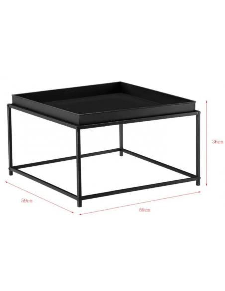 Sofabord udført i et design af metal. Sofabordet måler 36 cm i højden og 59 x 59 cm i bredde og dybde.