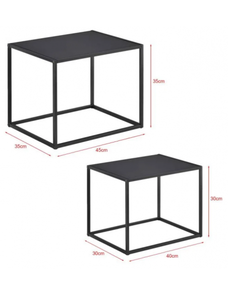 Sæt med 2 sofaborde, udført i et design af metal. Sofabordene måler 30 + 35 cm i højden og 30 x 40 og 35 x 45 cm i bredde og dybde.
